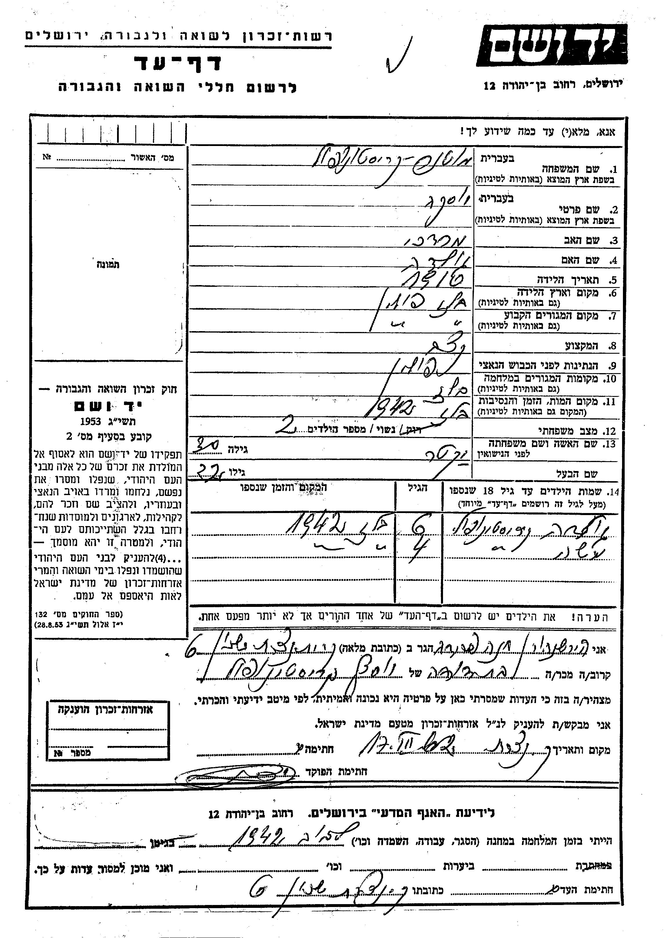 Yad Vashem - Pages of Testimony Names Memorial Collection
