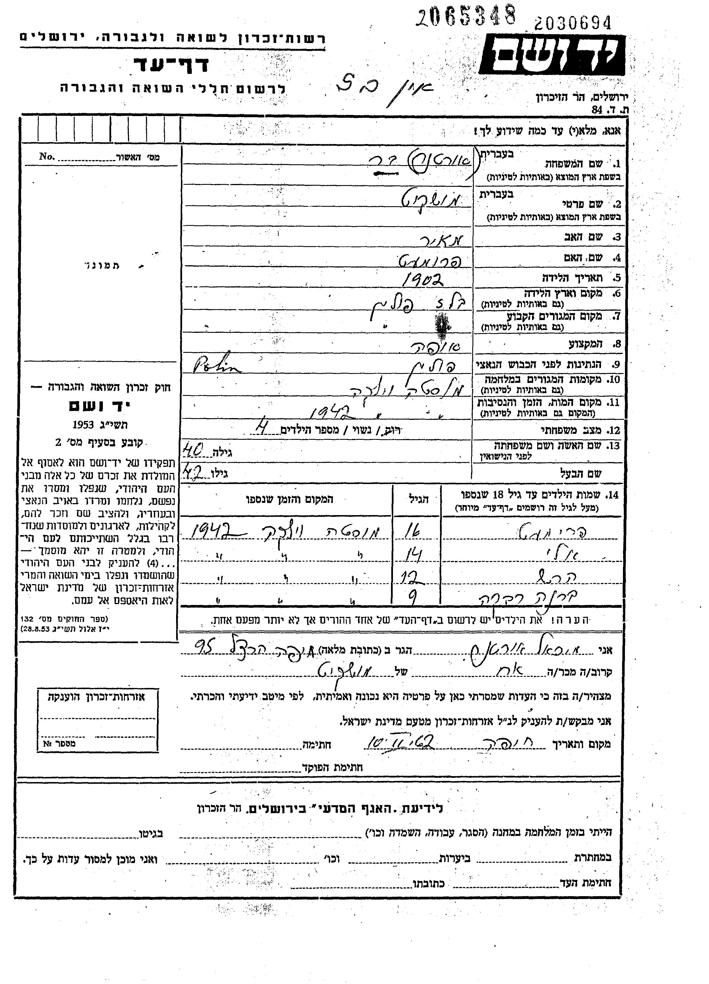 Yad Vashem - Pages of Testimony Names Memorial Collection
