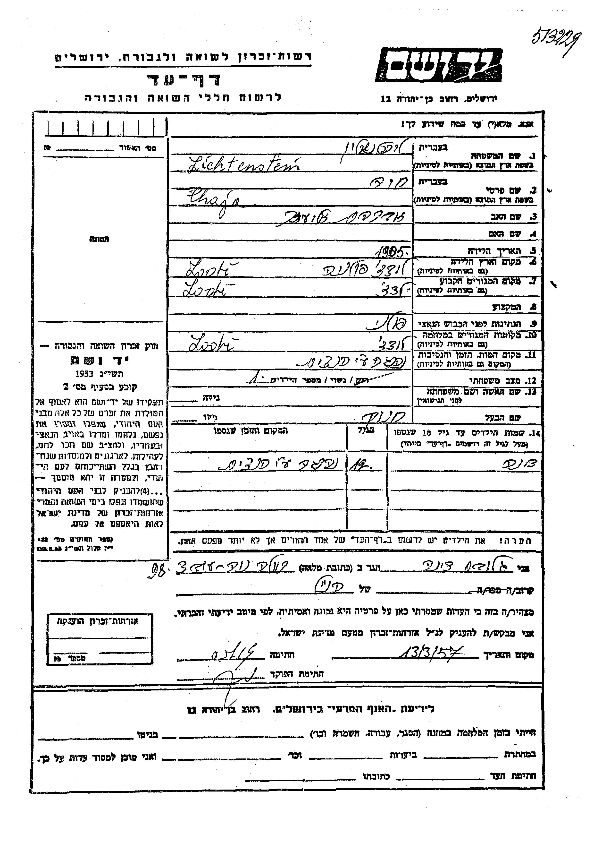 Lichtenstein Dina Lodz, Pologne Feuille de témoignage