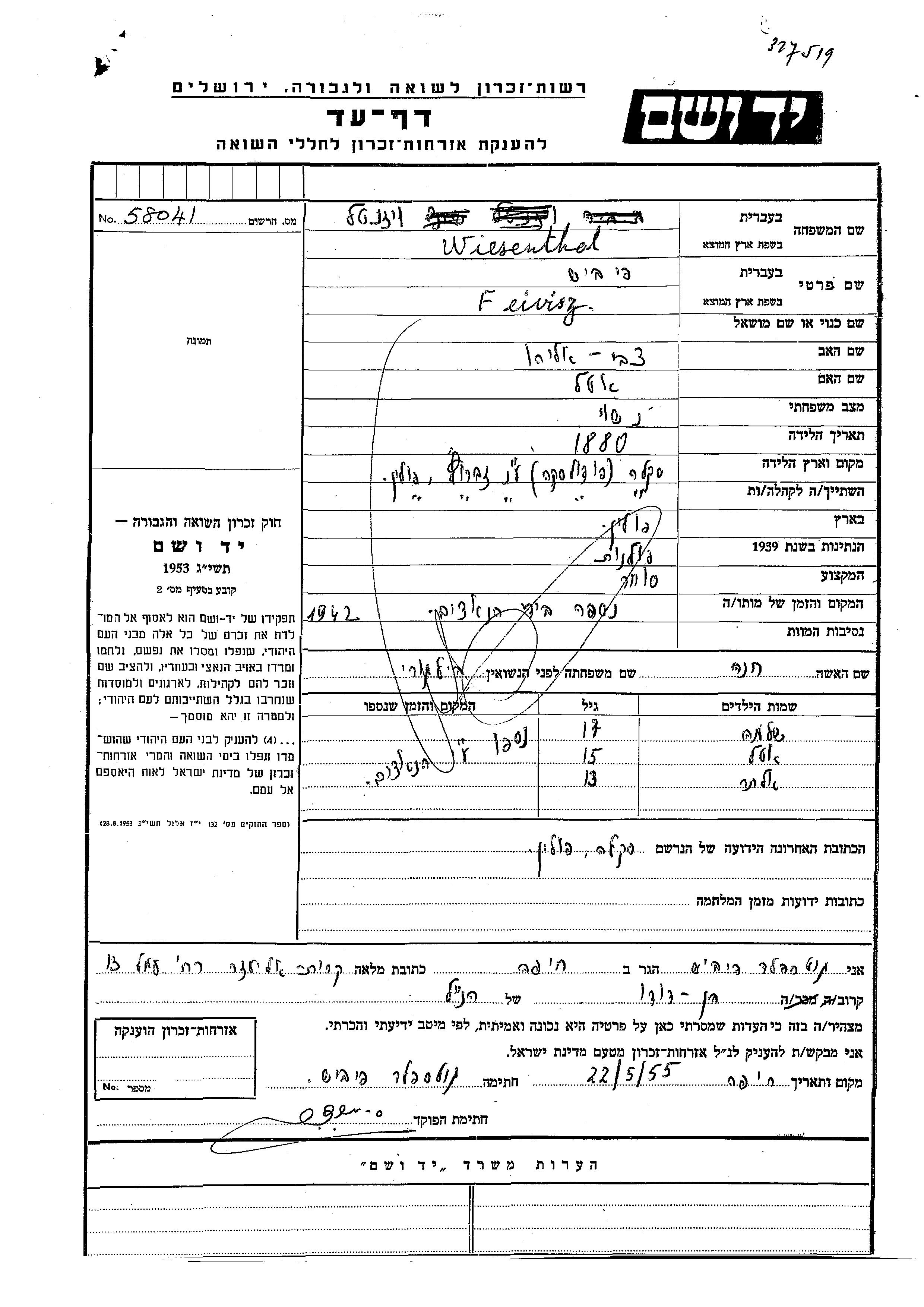 Yad Vashem - Pages of Testimony Names Memorial Collection