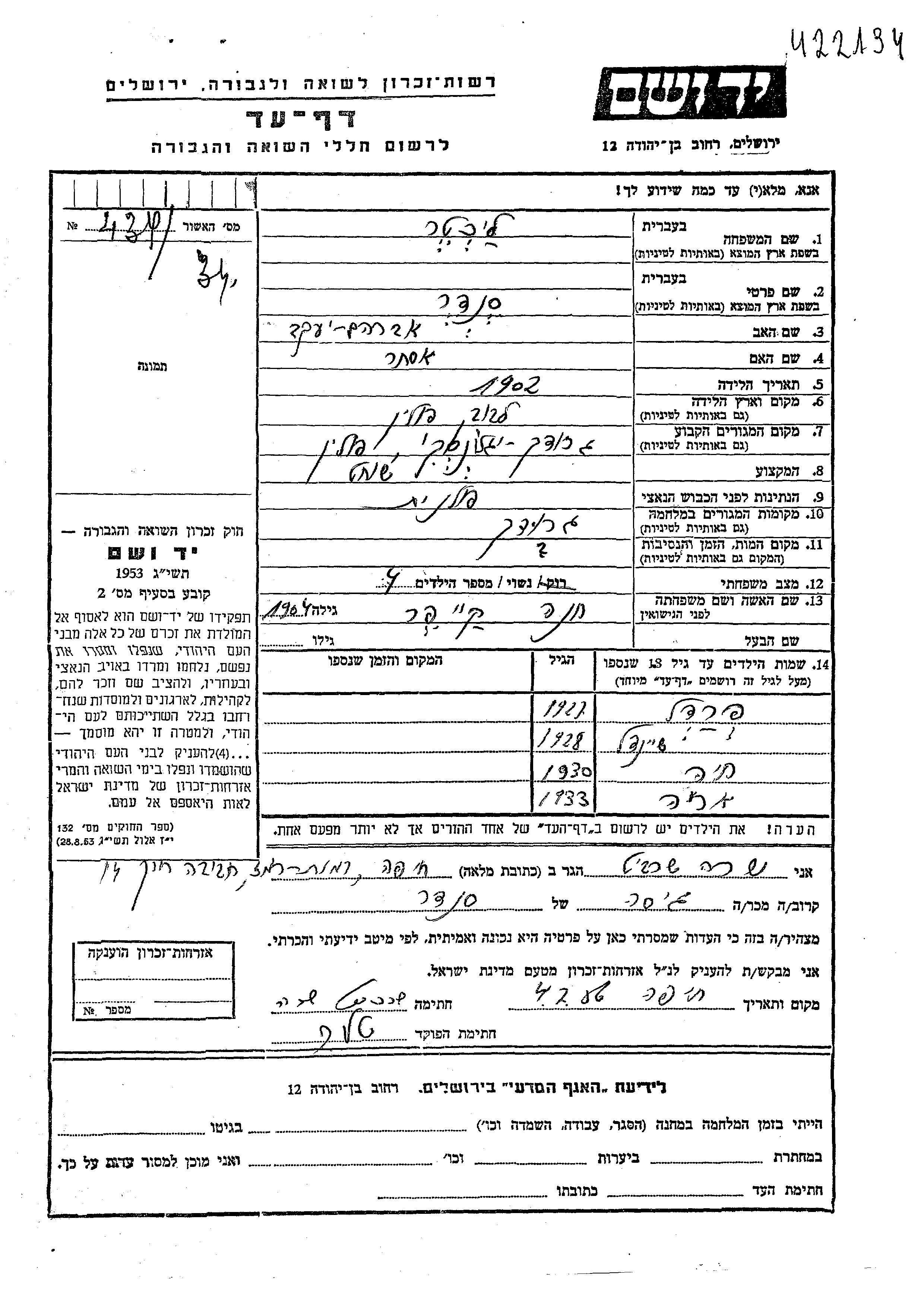 Yad Vashem - Pages of Testimony Names Memorial Collection