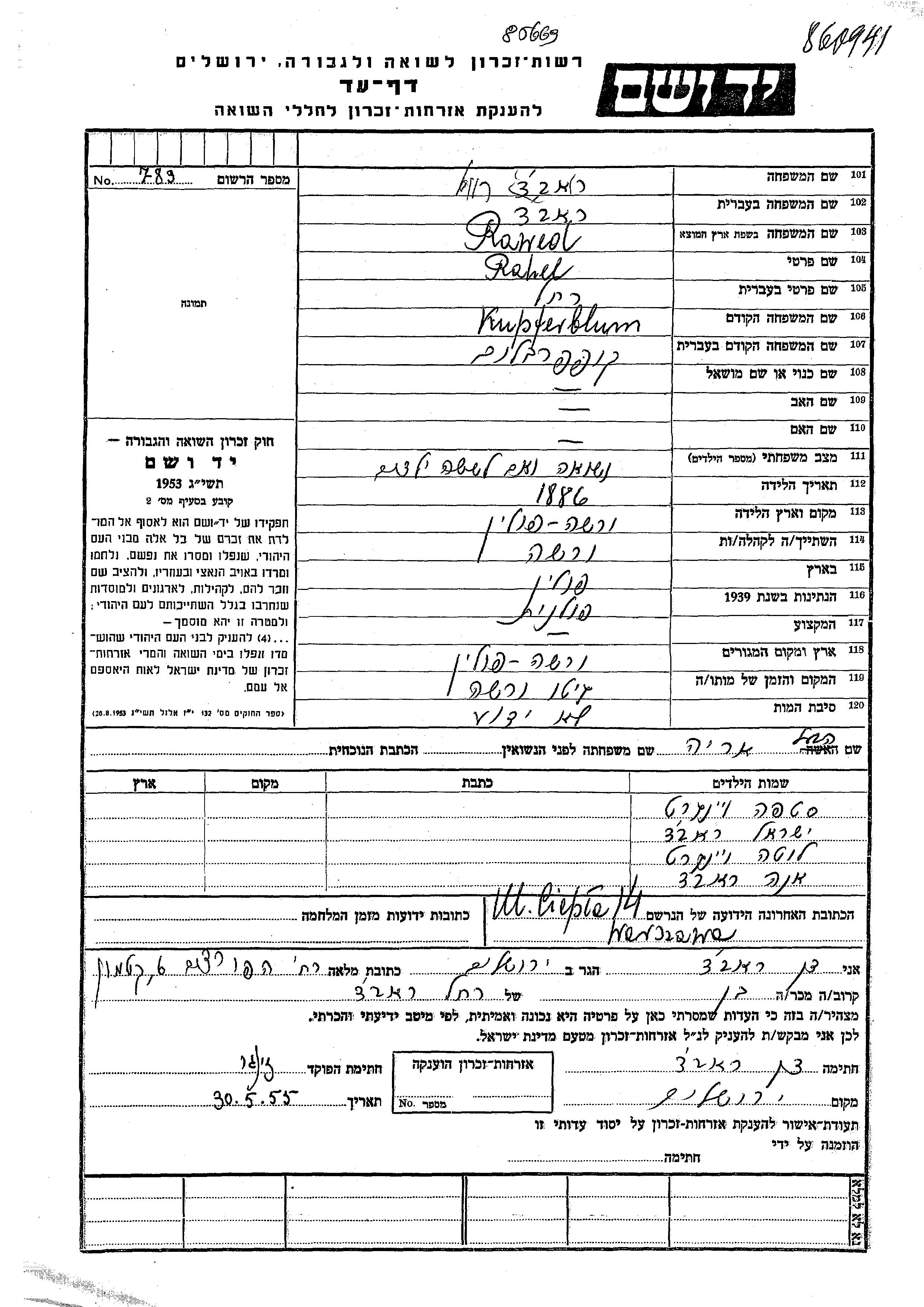 Yad Vashem - Pages of Testimony Names Memorial Collection