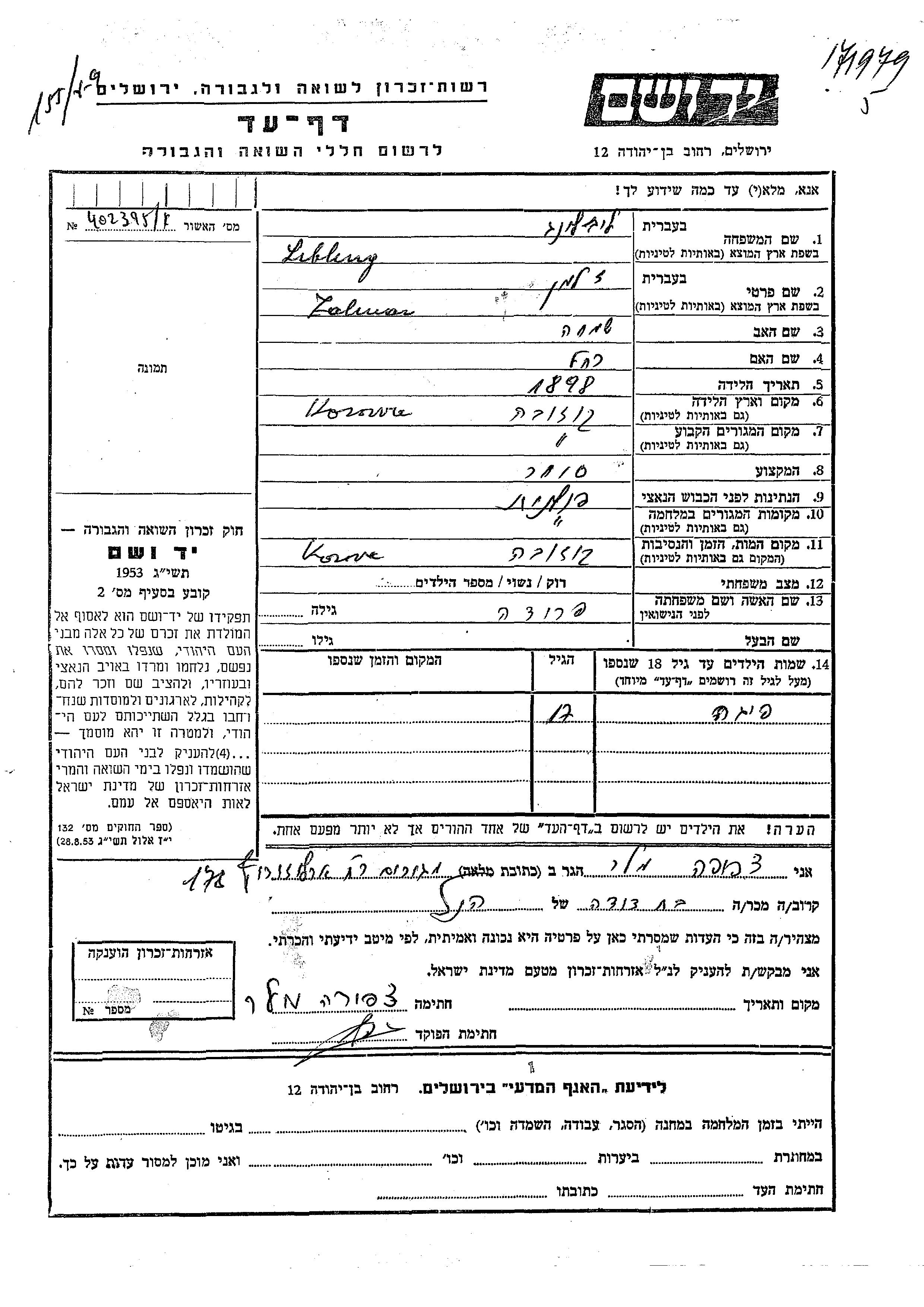 Yad Vashem - Pages of Testimony Names Memorial Collection