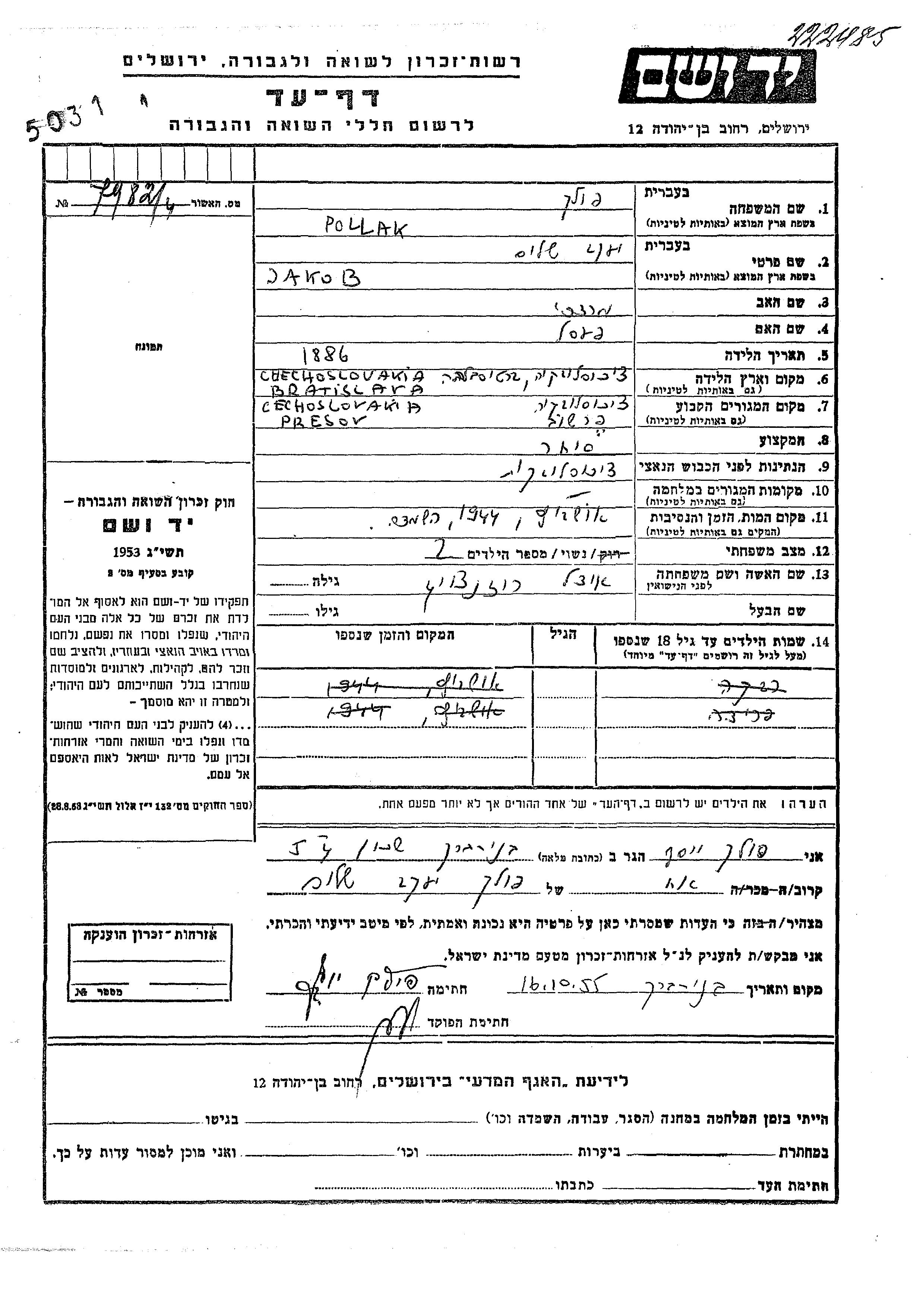 Yad Vashem - Pages of Testimony Names Memorial Collection