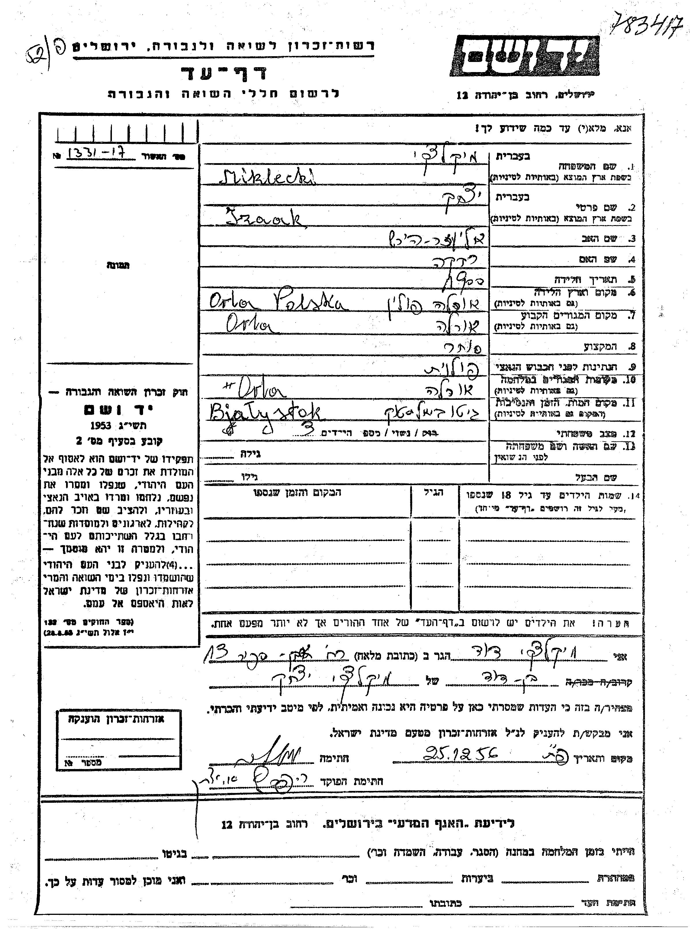Izaak a été assassiné pendant la Shoah. Lieu de la mort: Bialystok, Pologne.