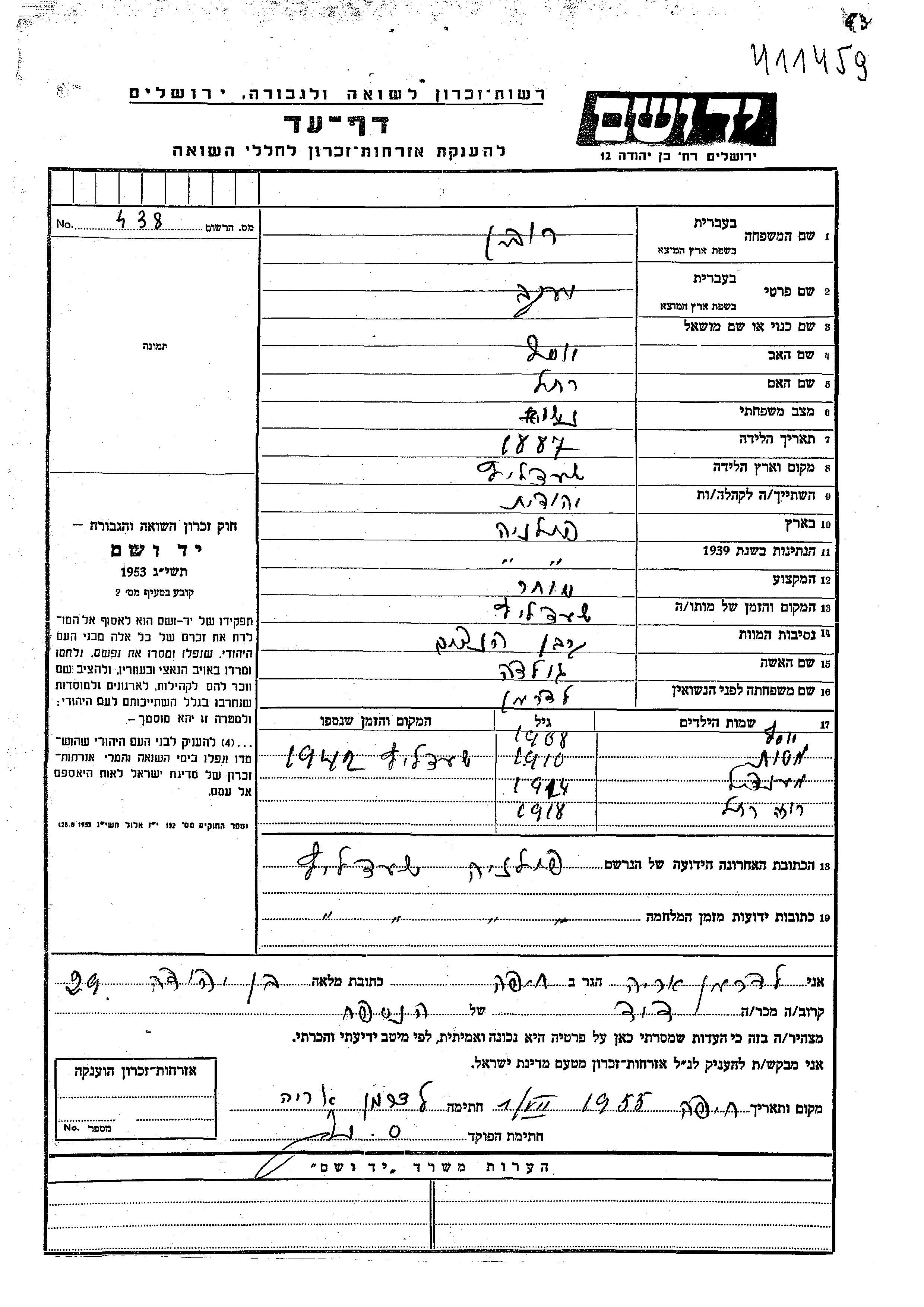 Yad Vashem - Pages of Testimony Names Memorial Collection