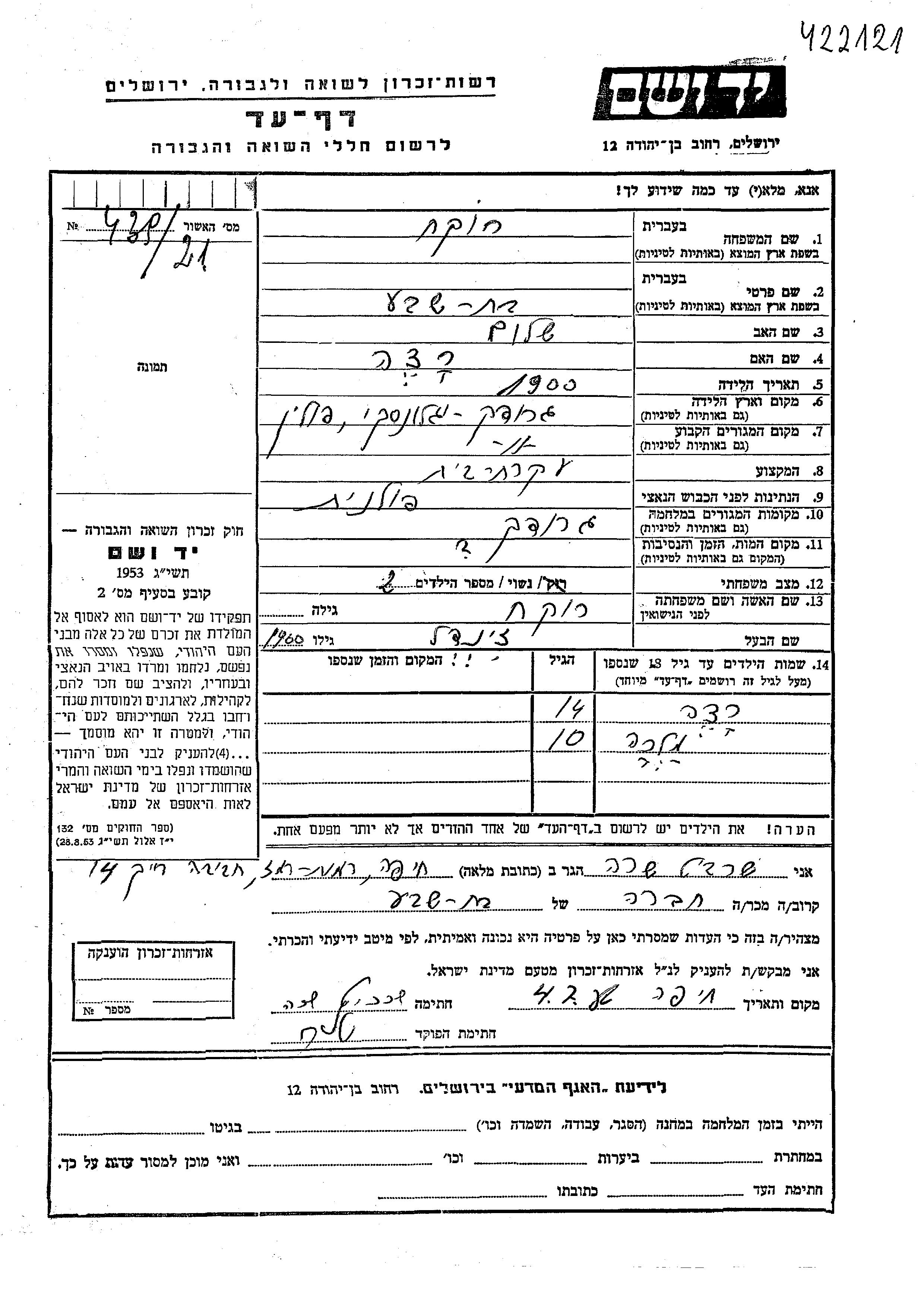 Yad Vashem - Pages of Testimony Names Memorial Collection