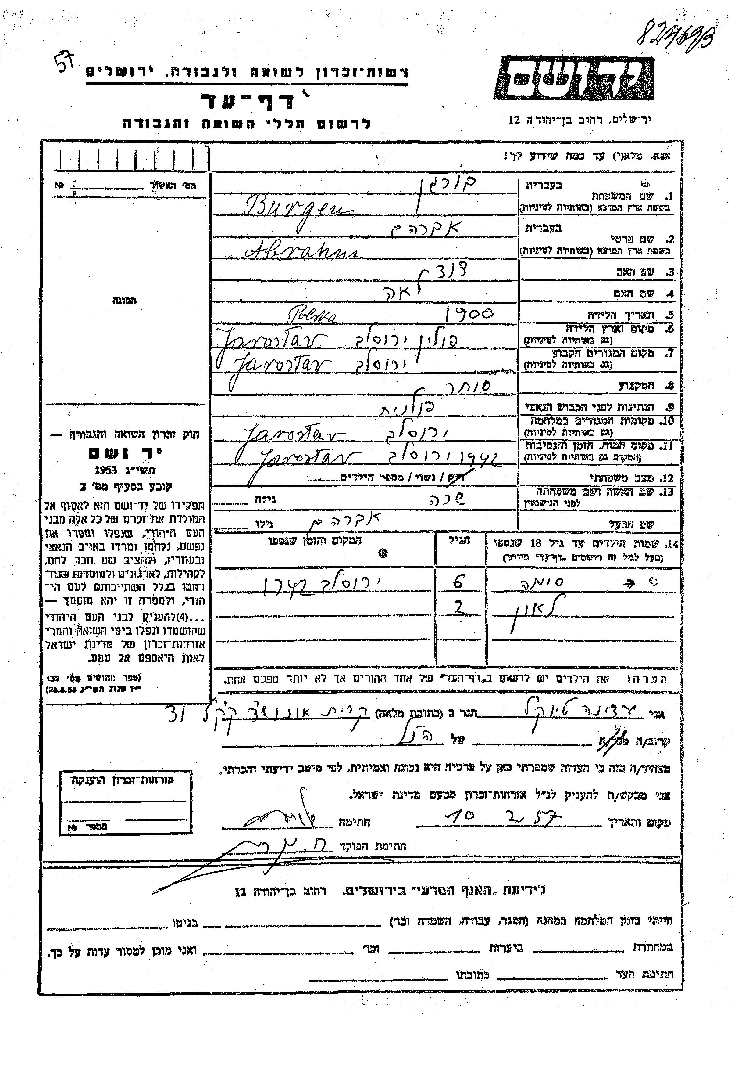 Burgen Sima Jaroslav, Pologne Feuille de témoignage