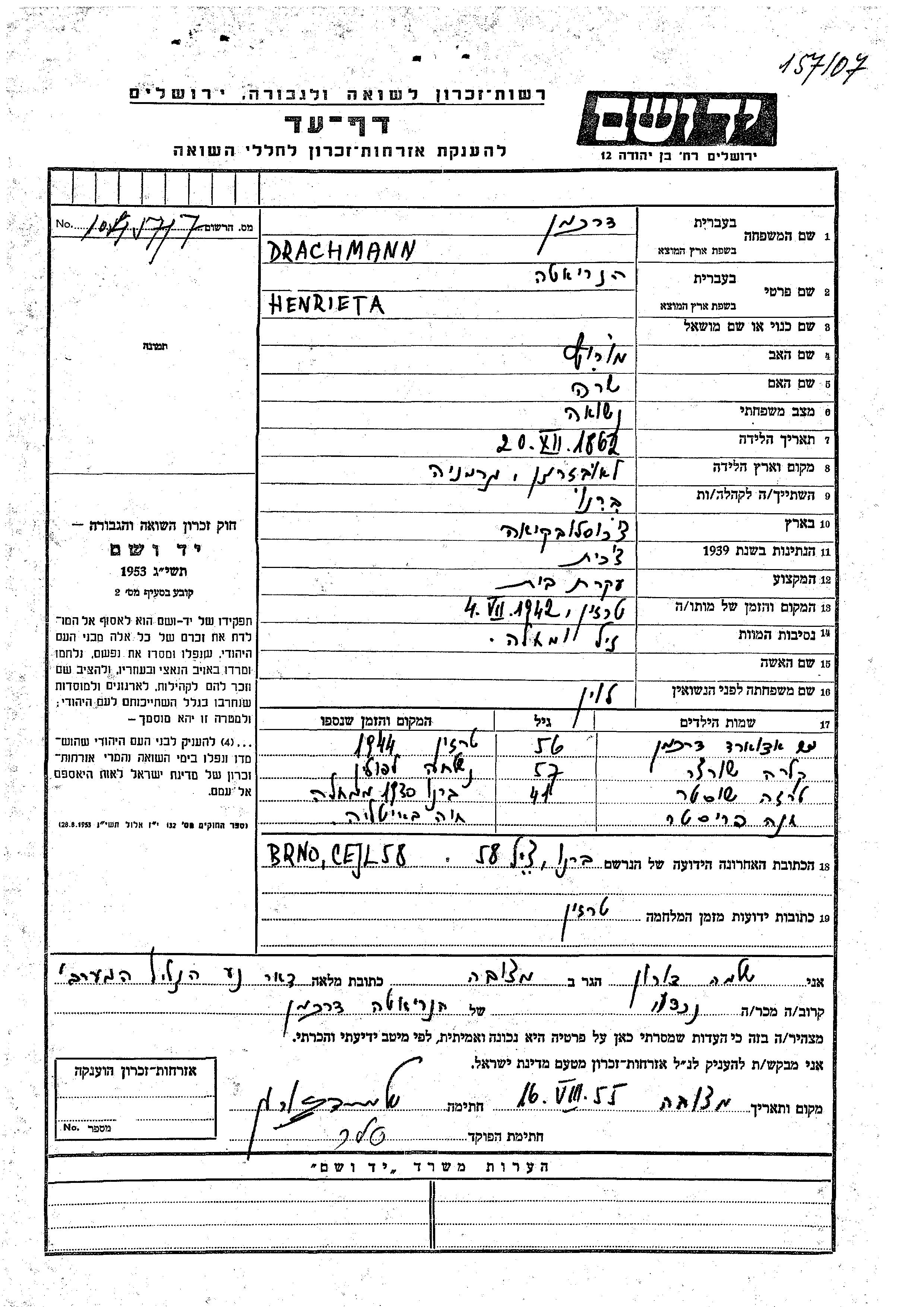 Drachmann Ana Brno, Tchécoslovaquie Feuille de témoignage