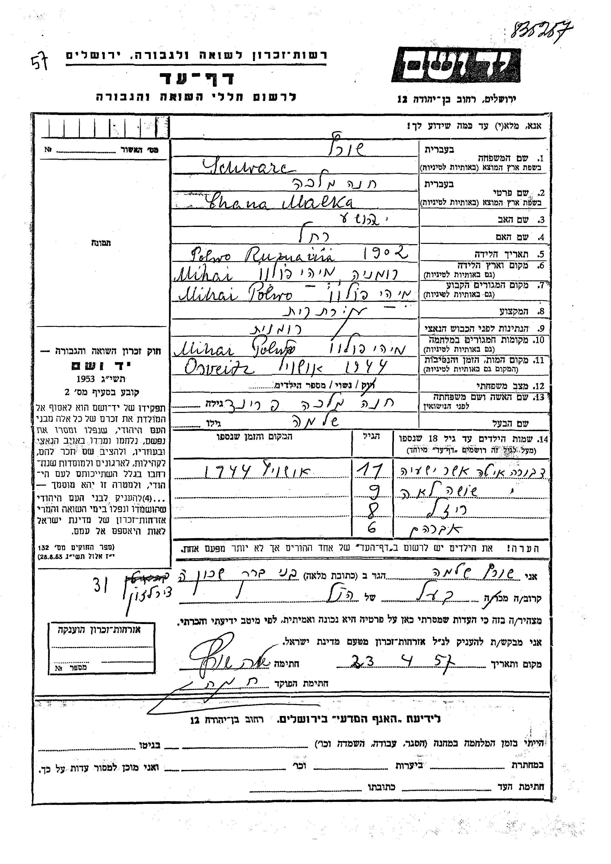 Yad Vashem - Pages of Testimony Names Memorial Collection