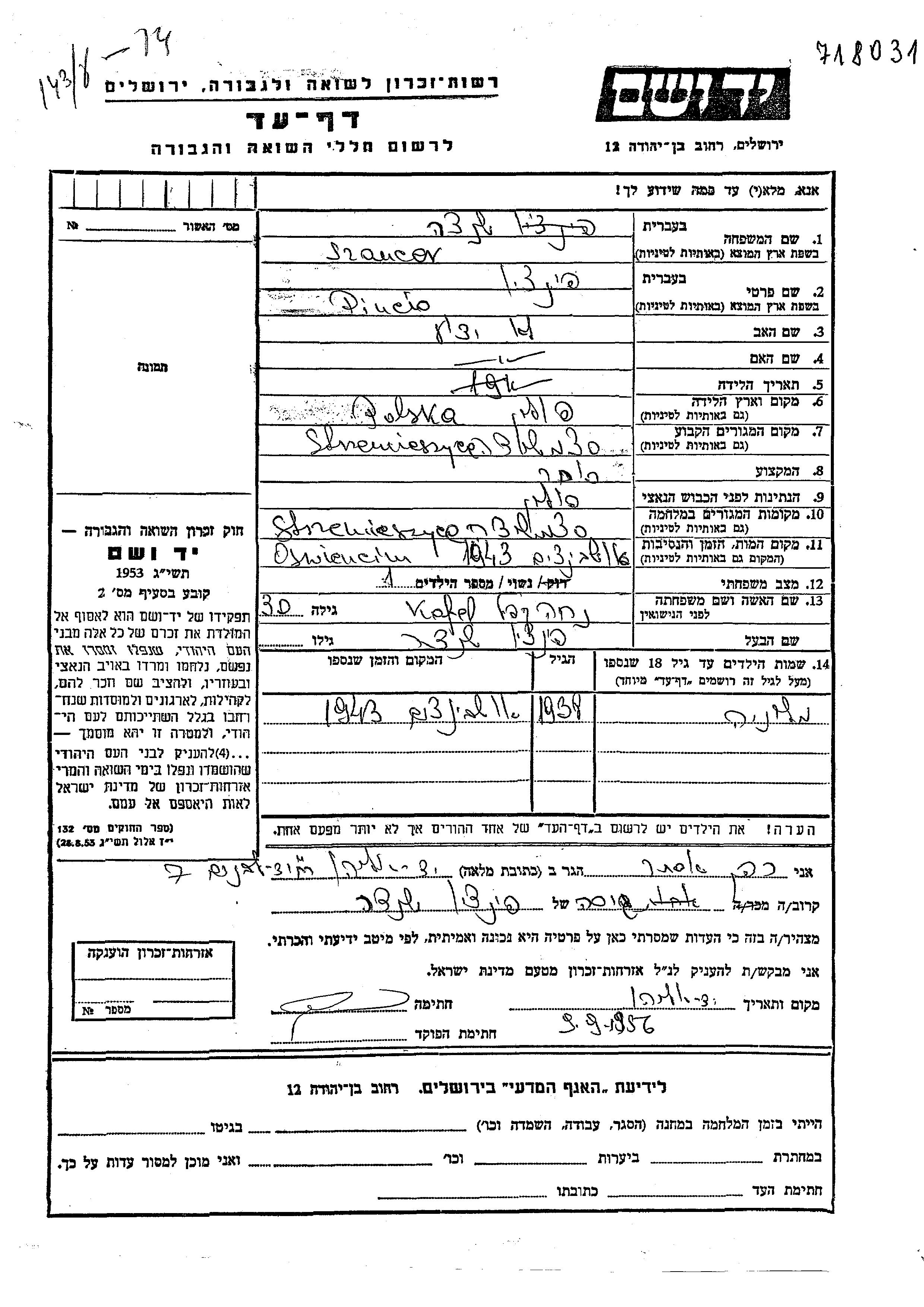 Yad Vashem - Pages of Testimony Names Memorial Collection