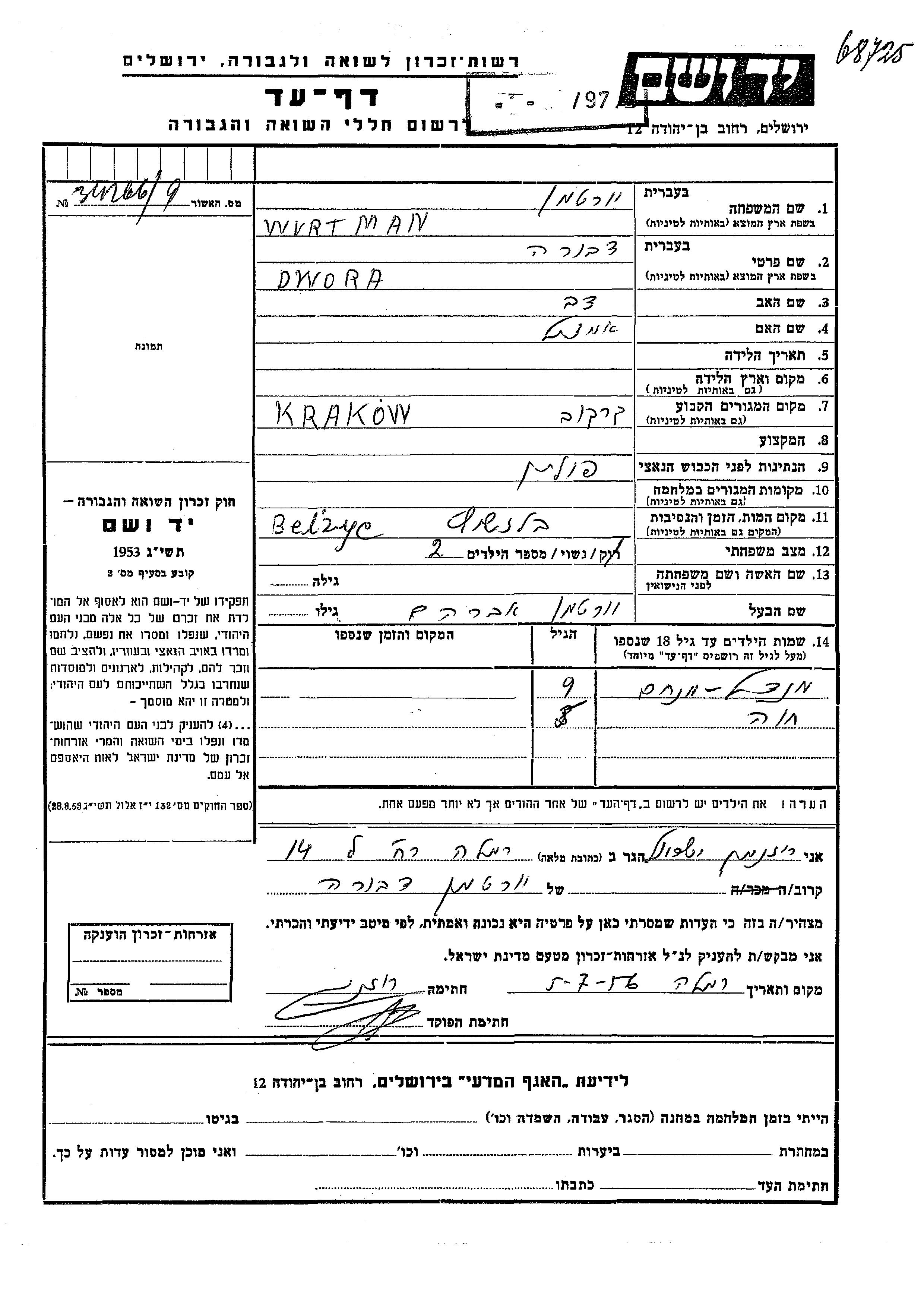 Yad Vashem - Pages of Testimony Names Memorial Collection