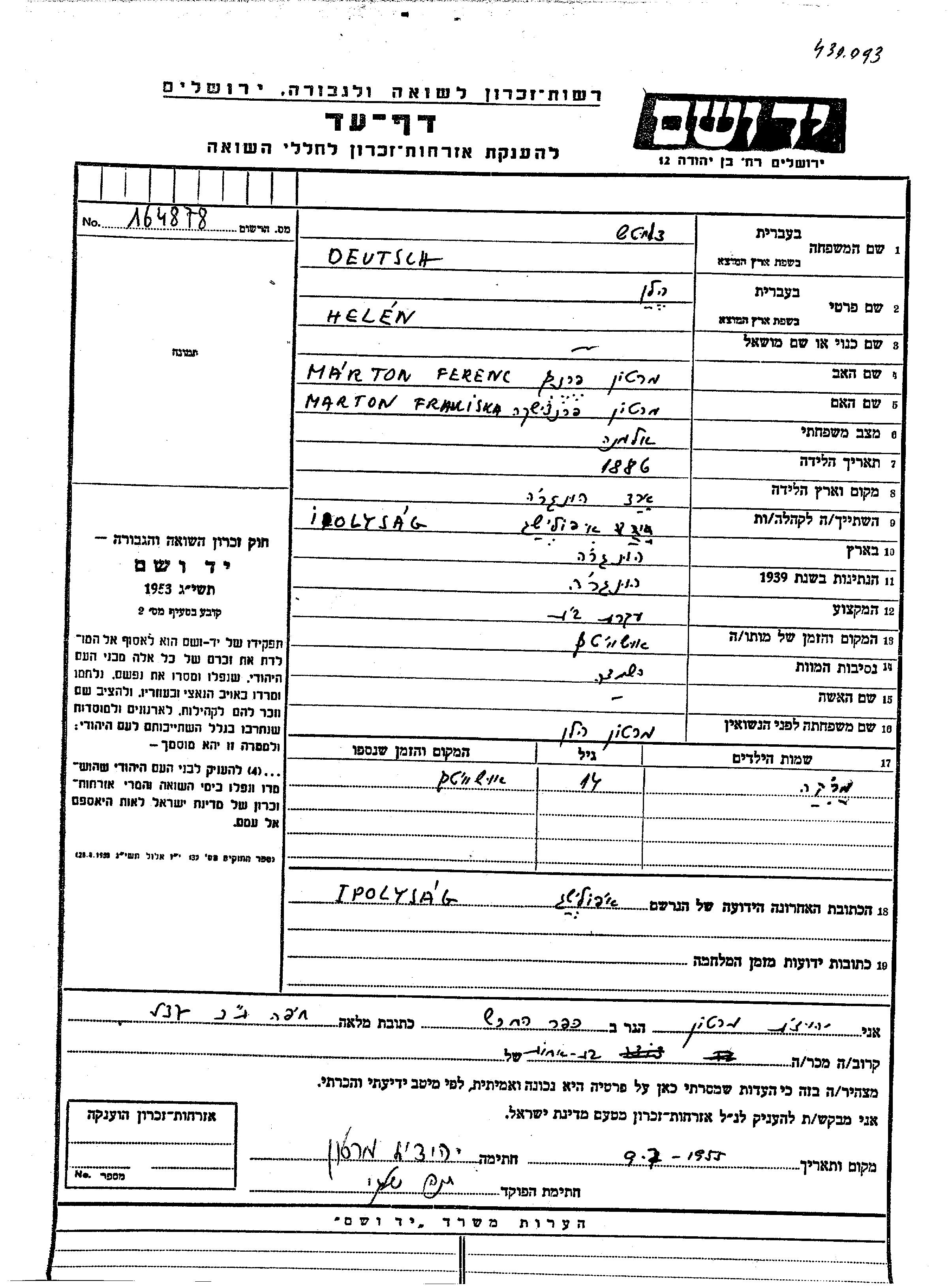 Yad Vashem - Pages of Testimony Names Memorial Collection