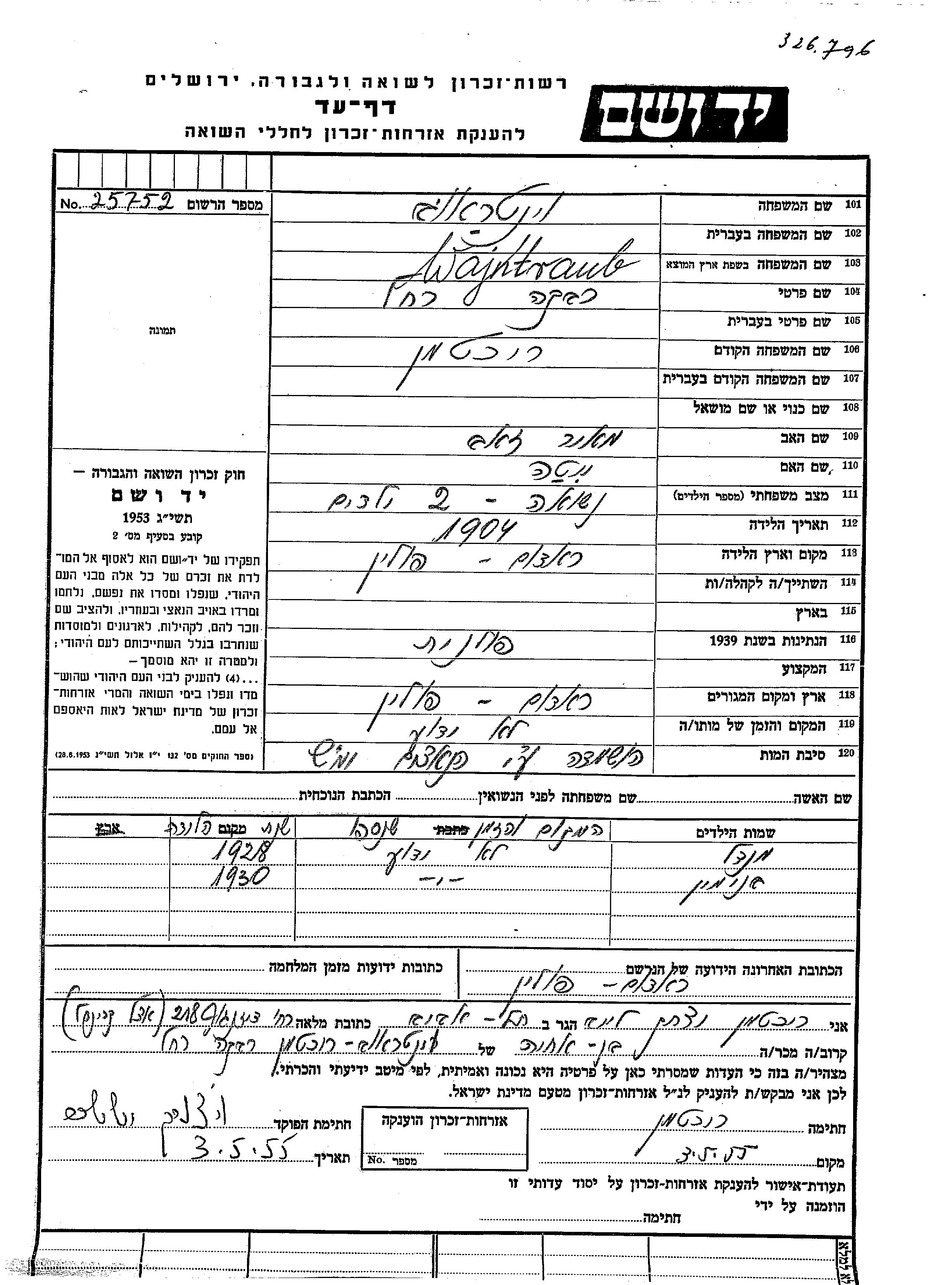 Yad Vashem - Pages of Testimony Names Memorial Collection