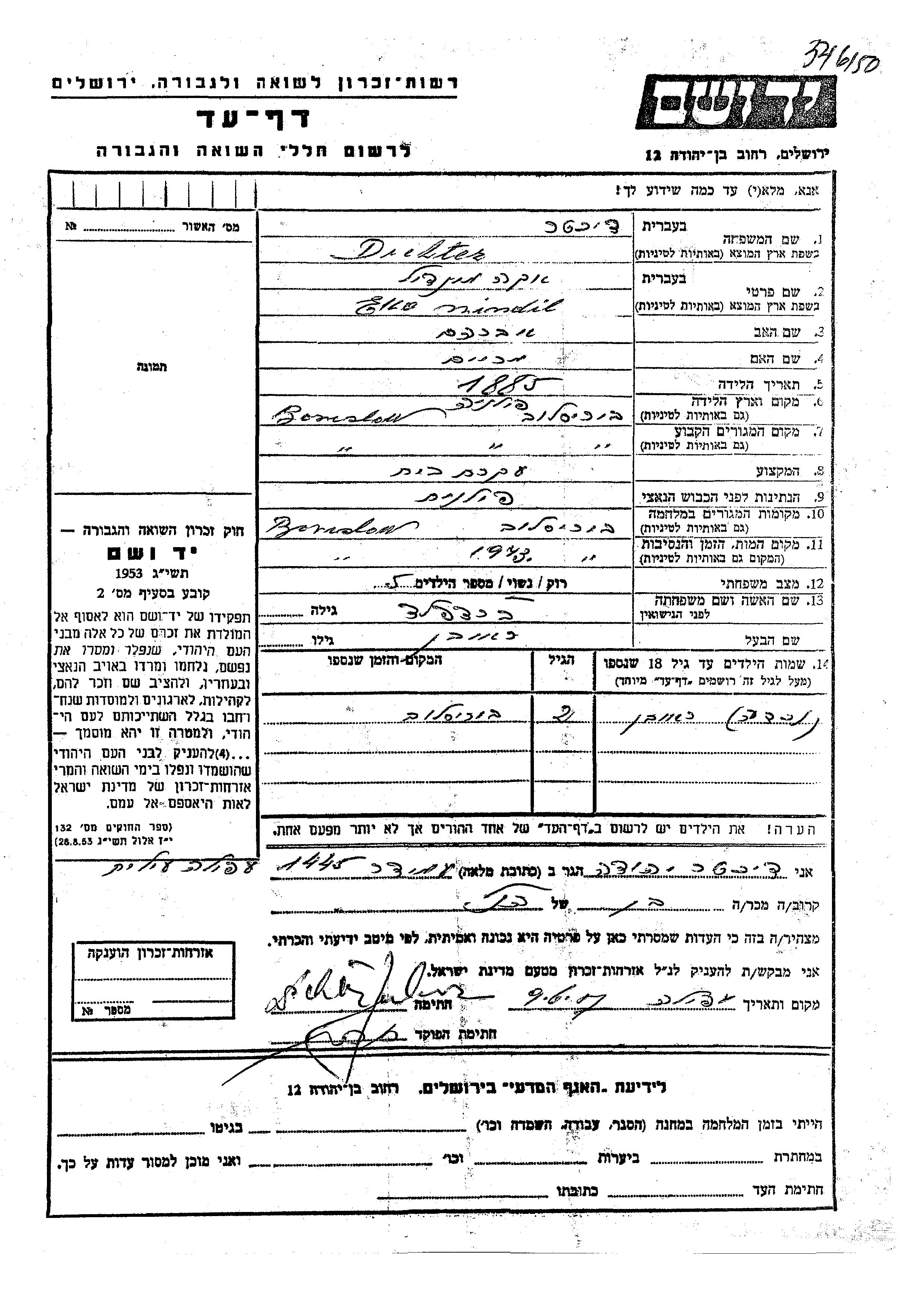 Yad Vashem - Pages of Testimony Names Memorial Collection