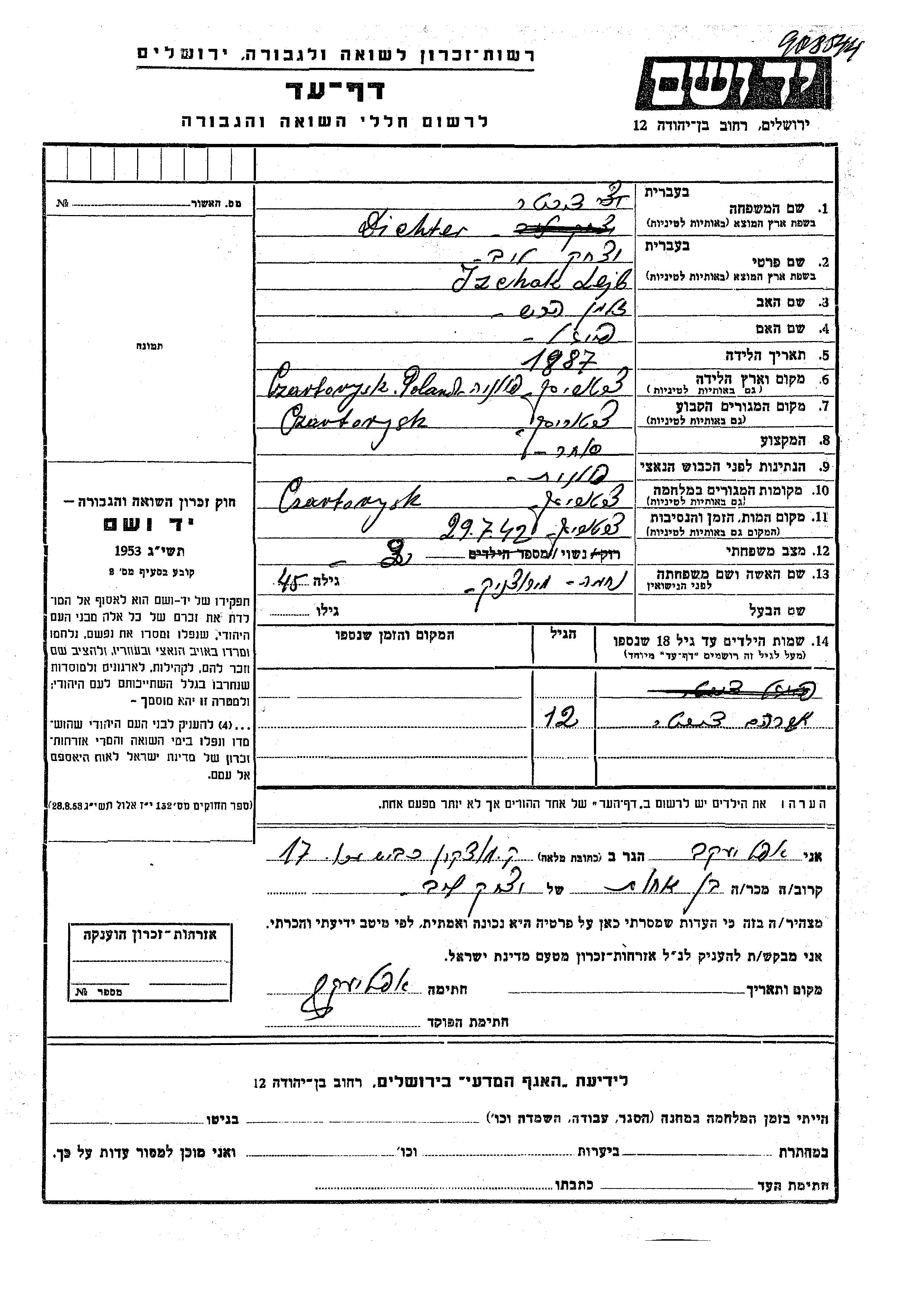 Yad Vashem - Pages of Testimony Names Memorial Collection