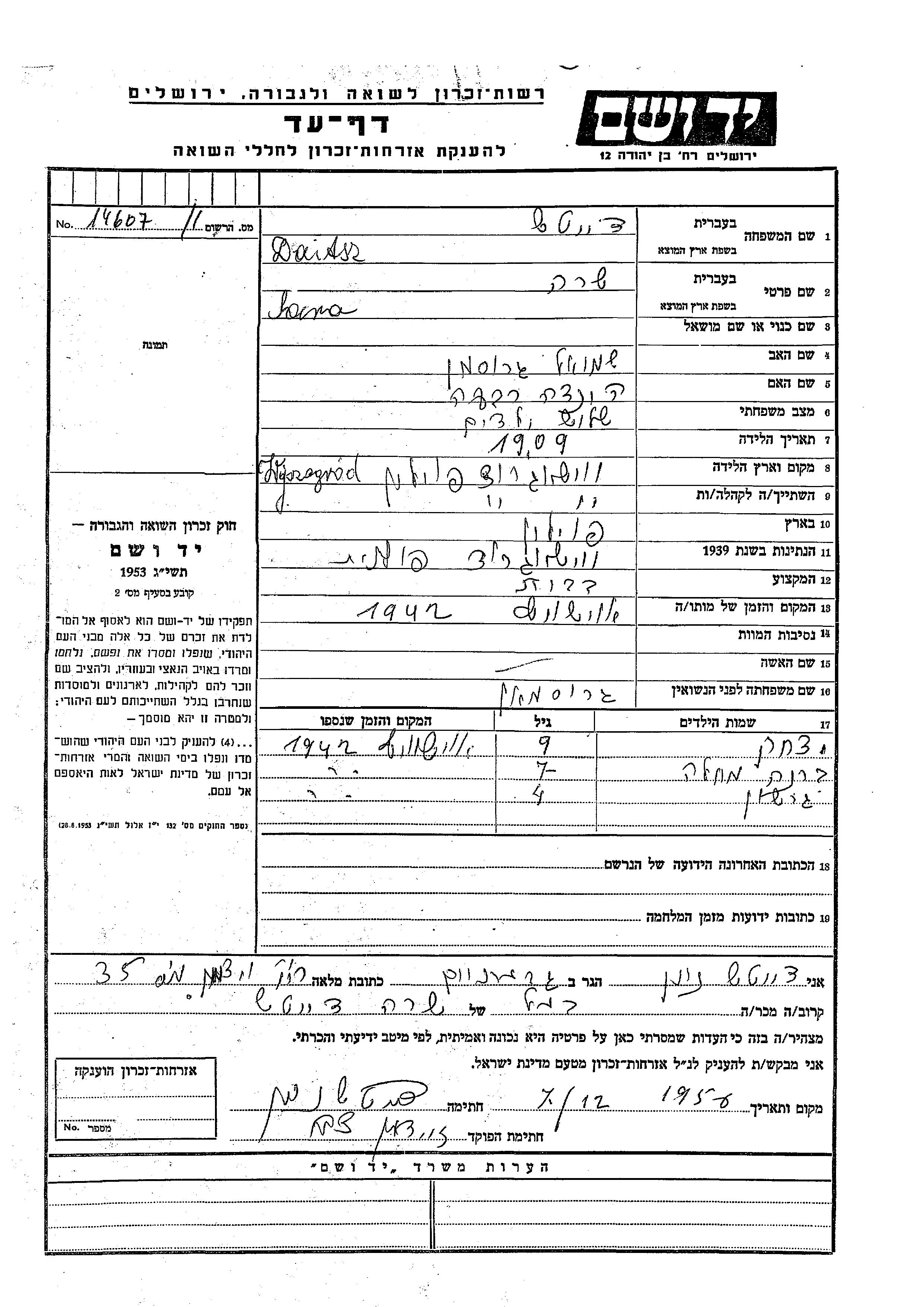 Yad Vashem - Pages of Testimony Names Memorial Collection
