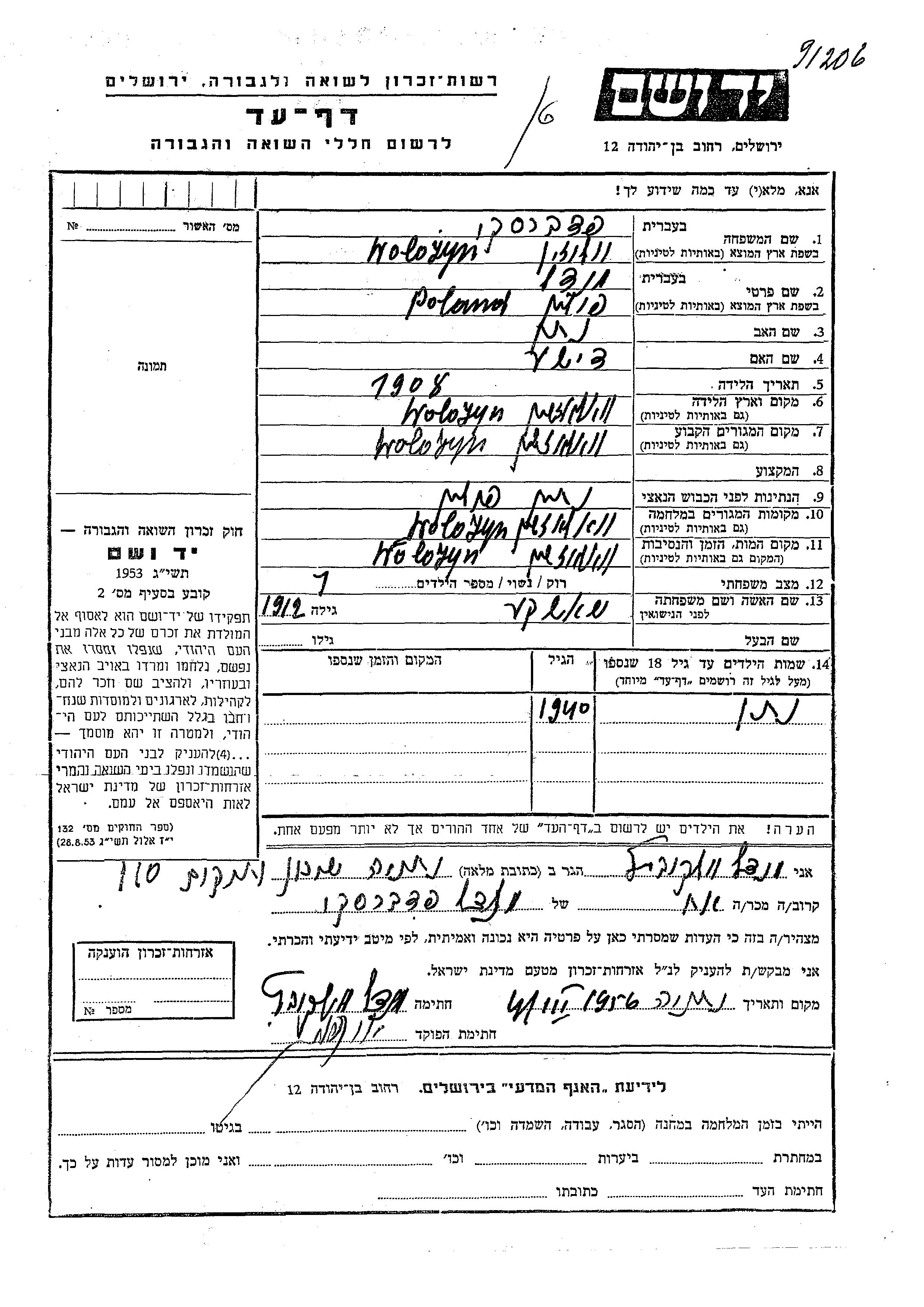 Yad Vashem - Pages of Testimony Names Memorial Collection