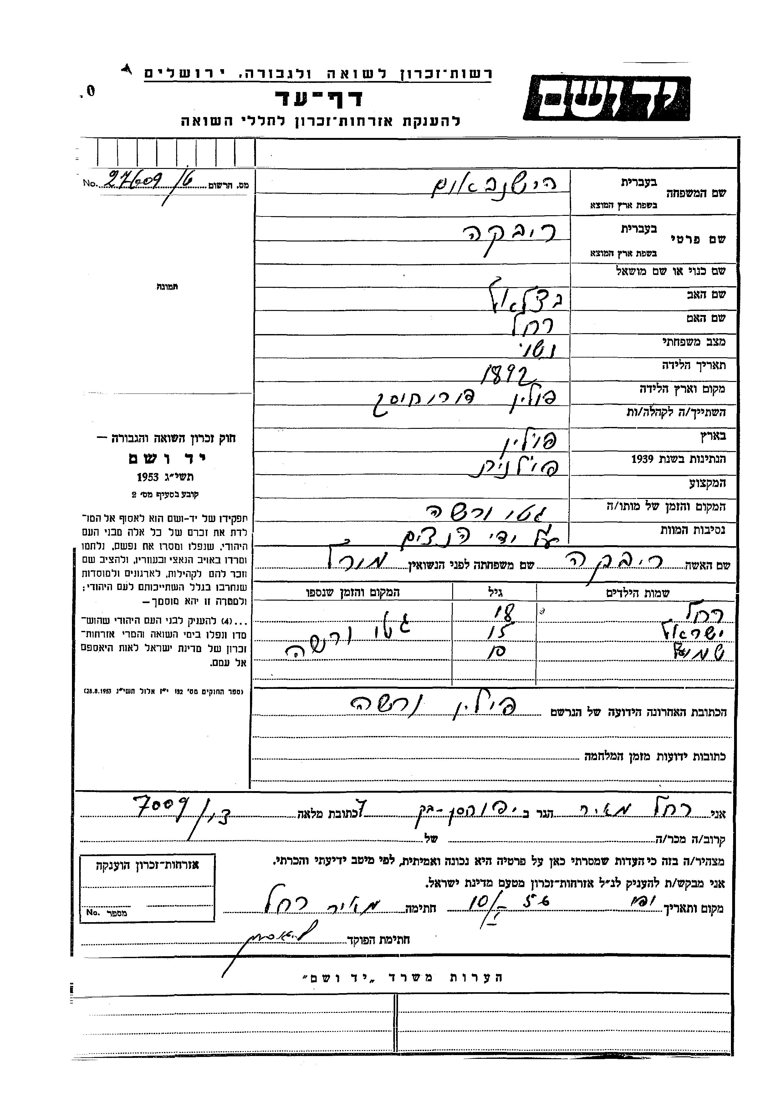 Yad Vashem - Pages of Testimony Names Memorial Collection