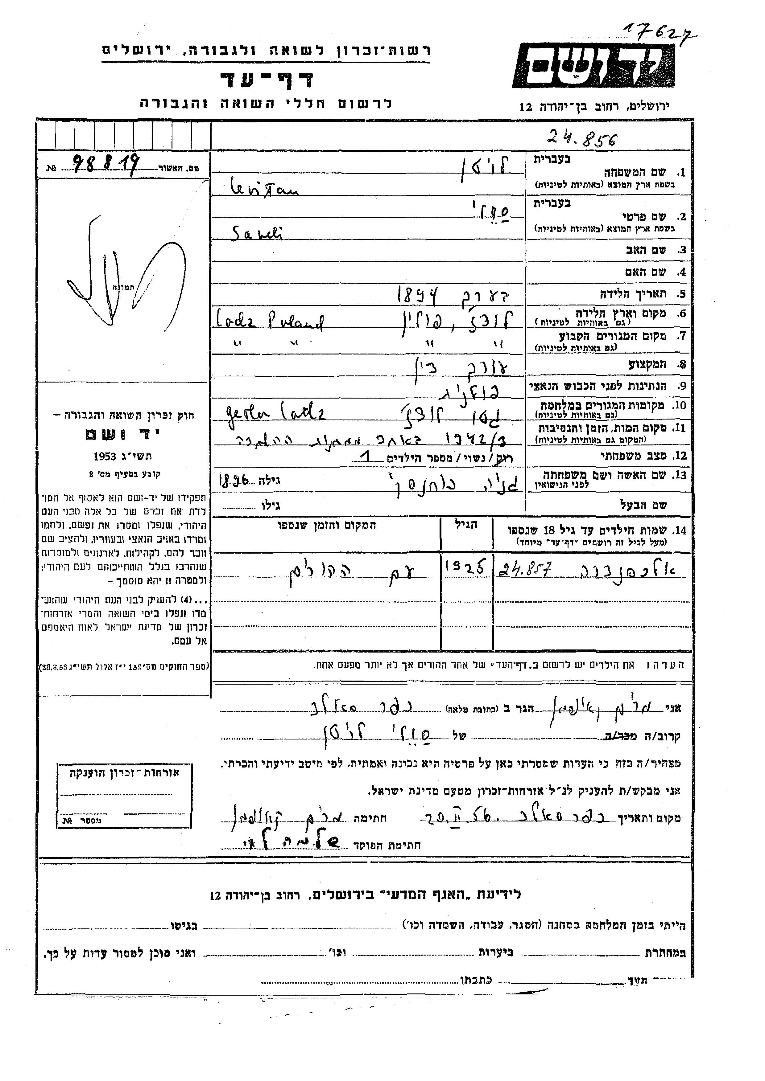Yad Vashem - Pages of Testimony Names Memorial Collection