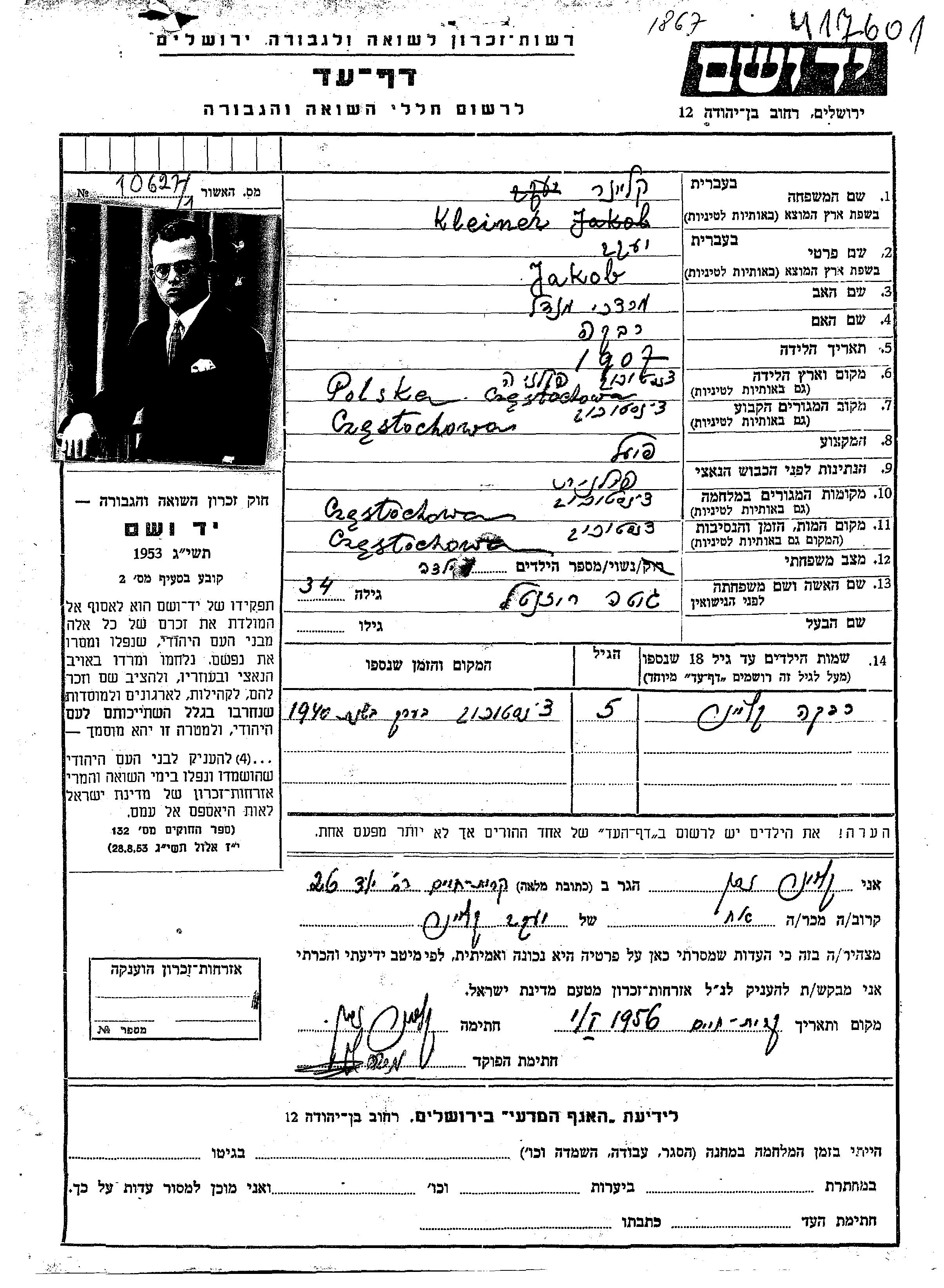 Yad Vashem - Pages of Testimony Names Memorial Collection