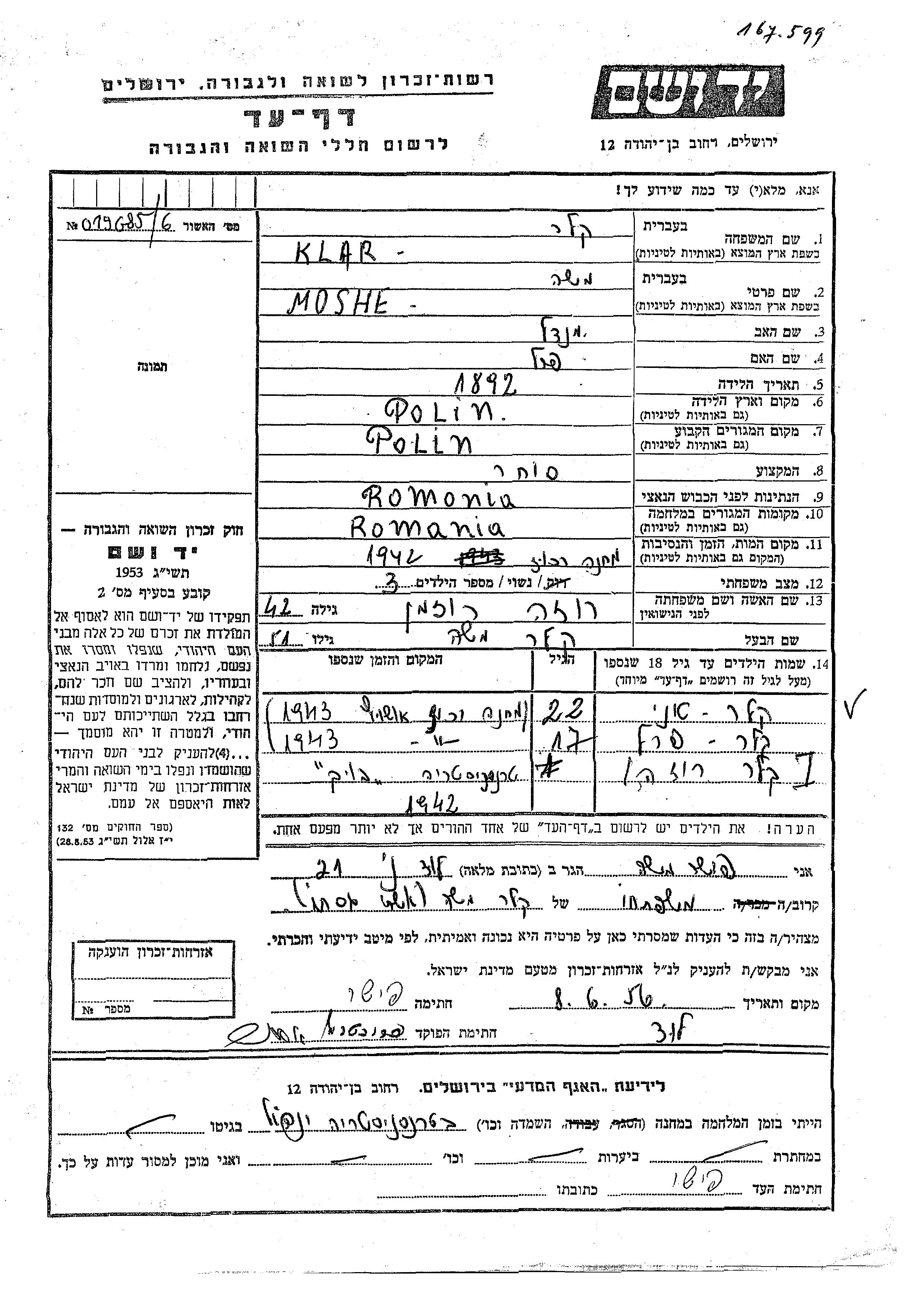 Yad Vashem - Pages of Testimony Names Memorial Collection