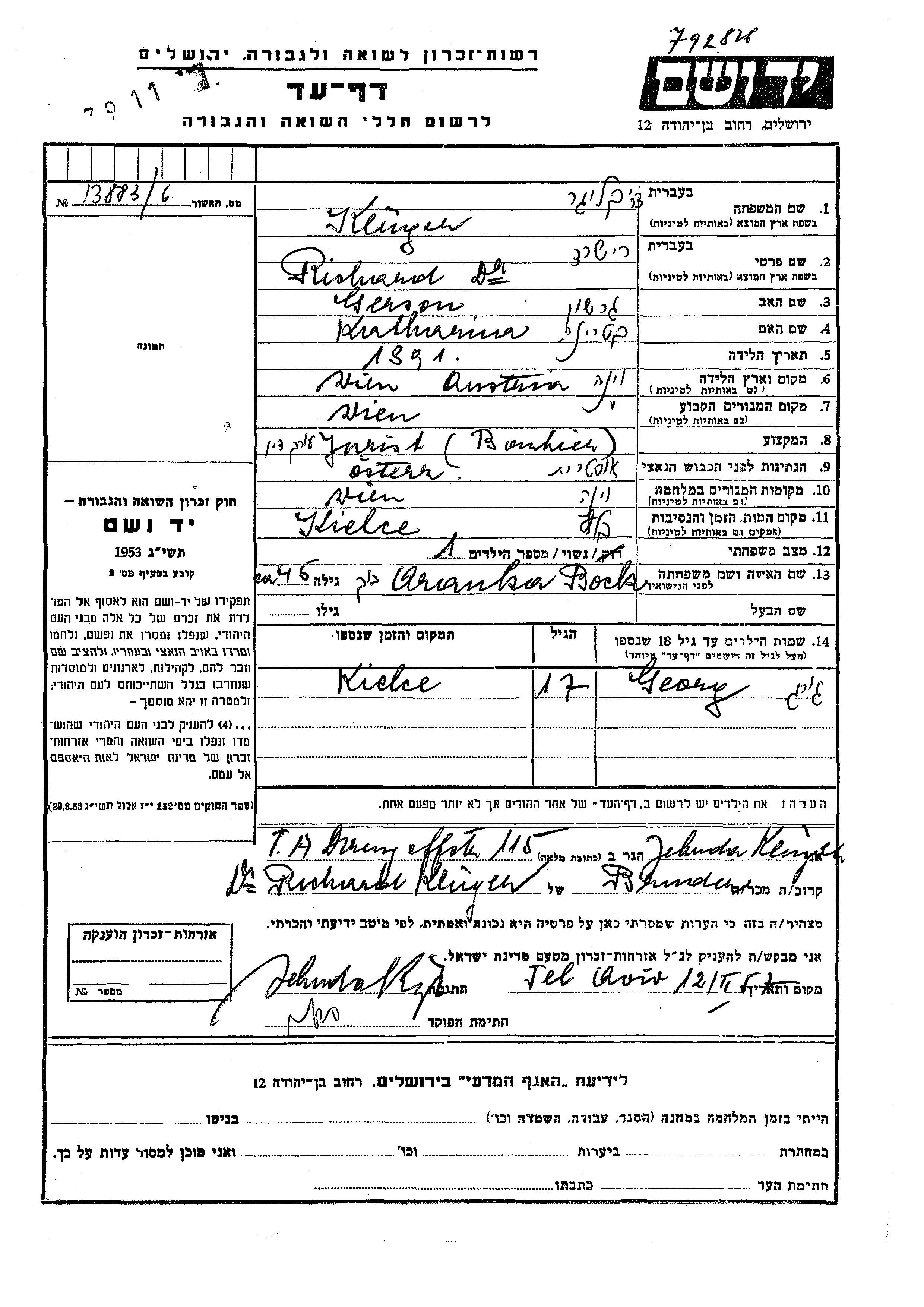 Yad Vashem - Pages of Testimony Names Memorial Collection