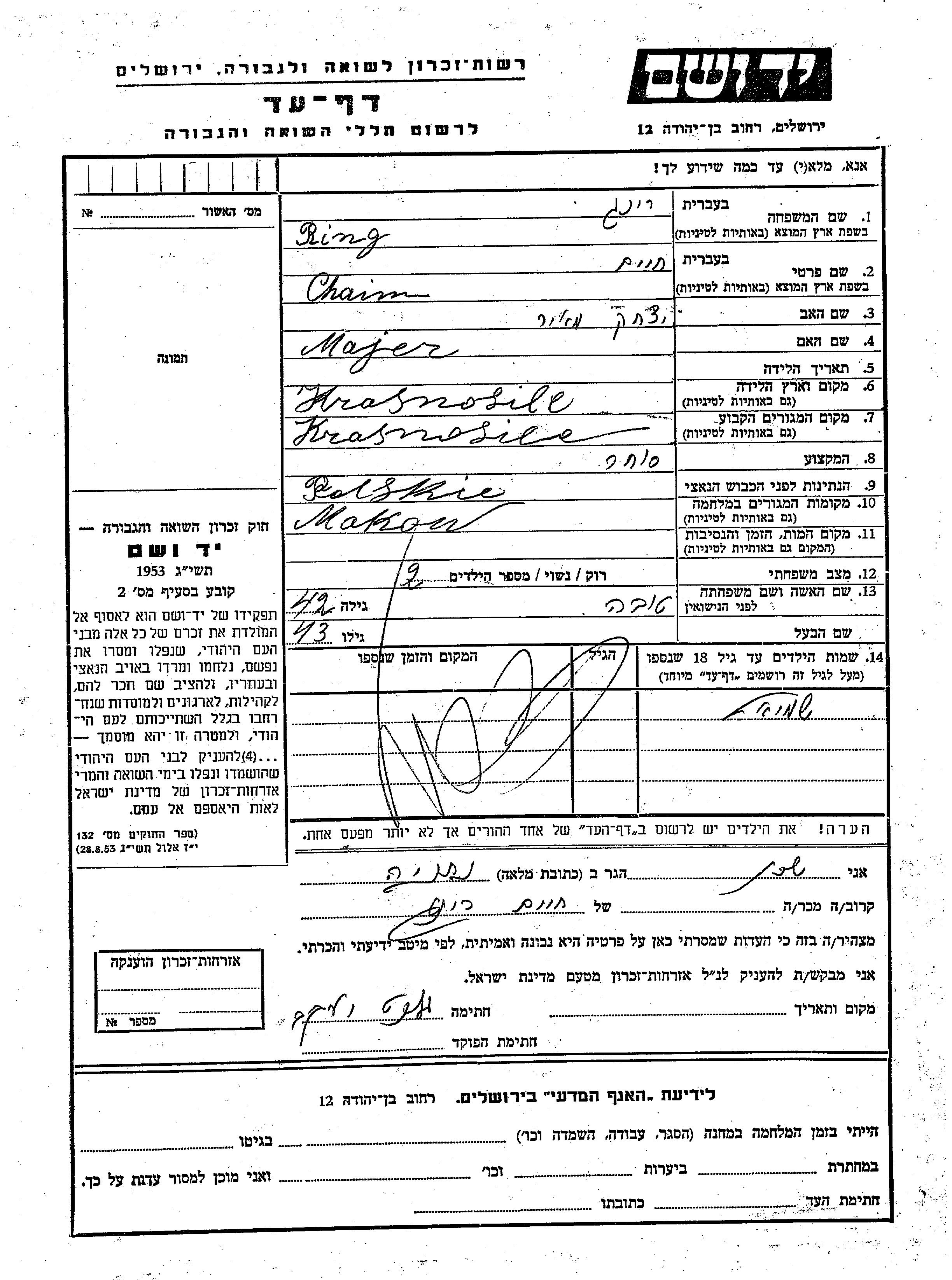 Recherche par nom du dépositeur de la Feuille de témoignage. Cette recherché indique aussi les noms de jeunes filles.