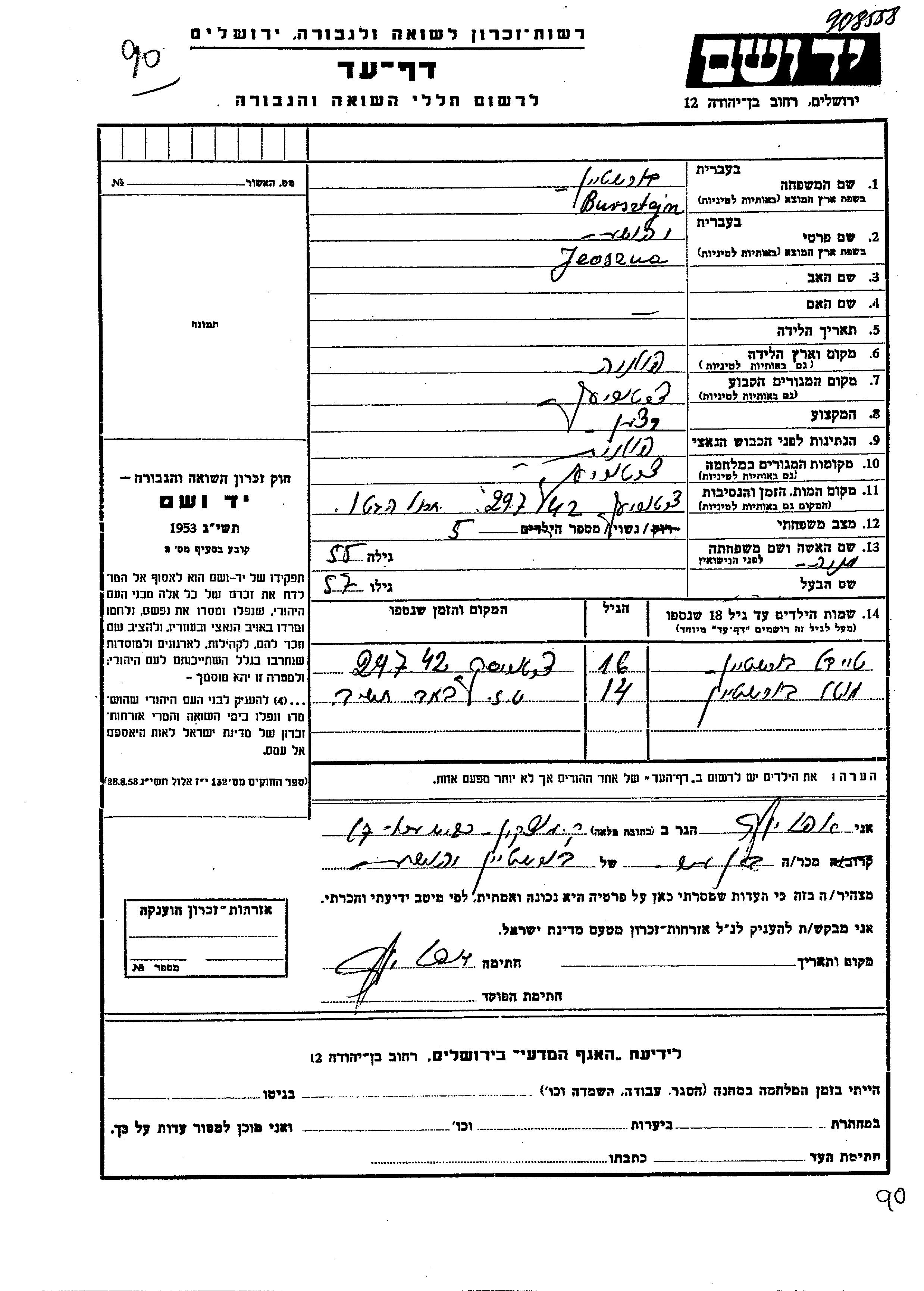 Yad Vashem - Pages of Testimony Names Memorial Collection