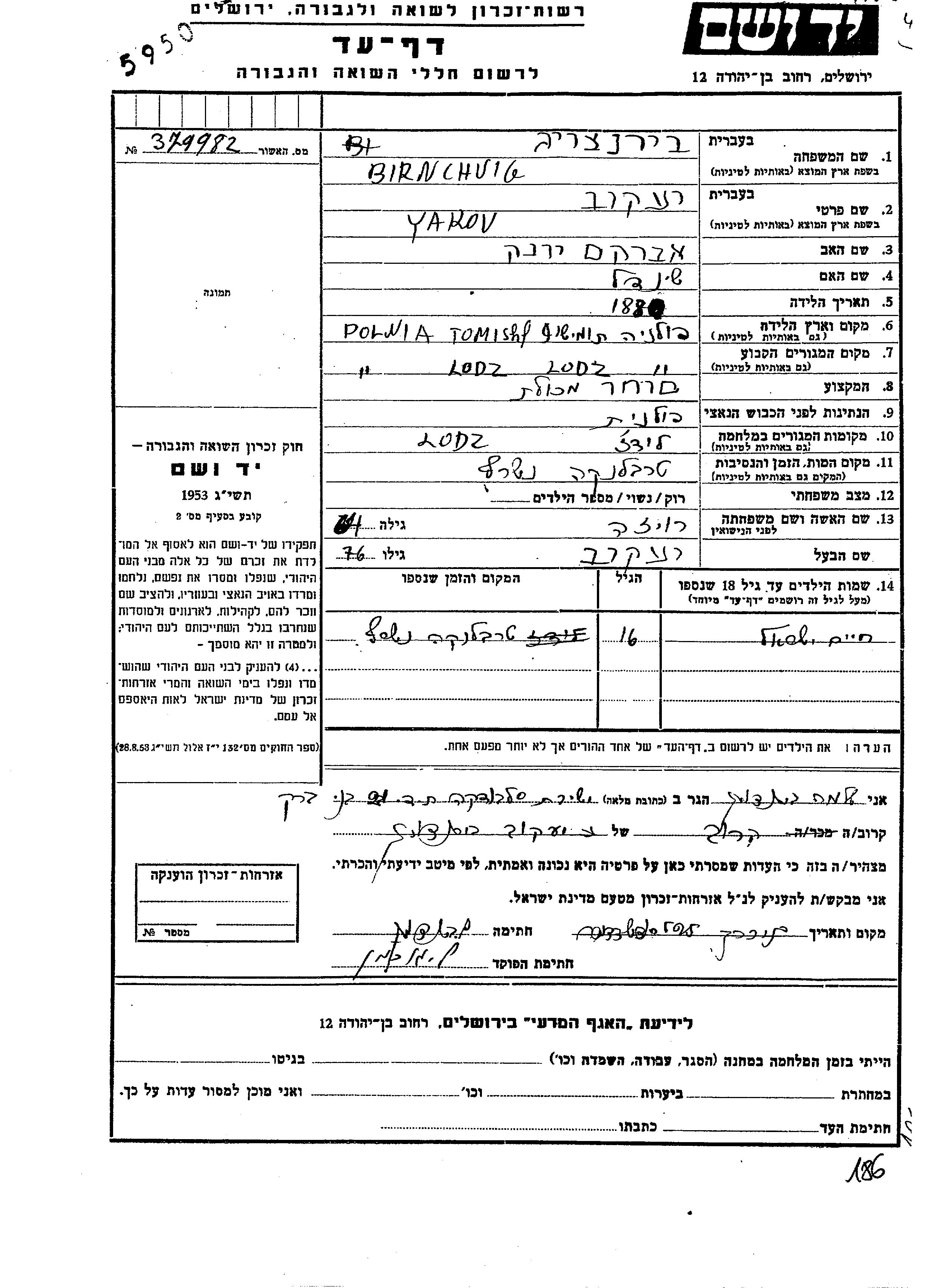 Yad Vashem - Pages of Testimony Names Memorial Collection
