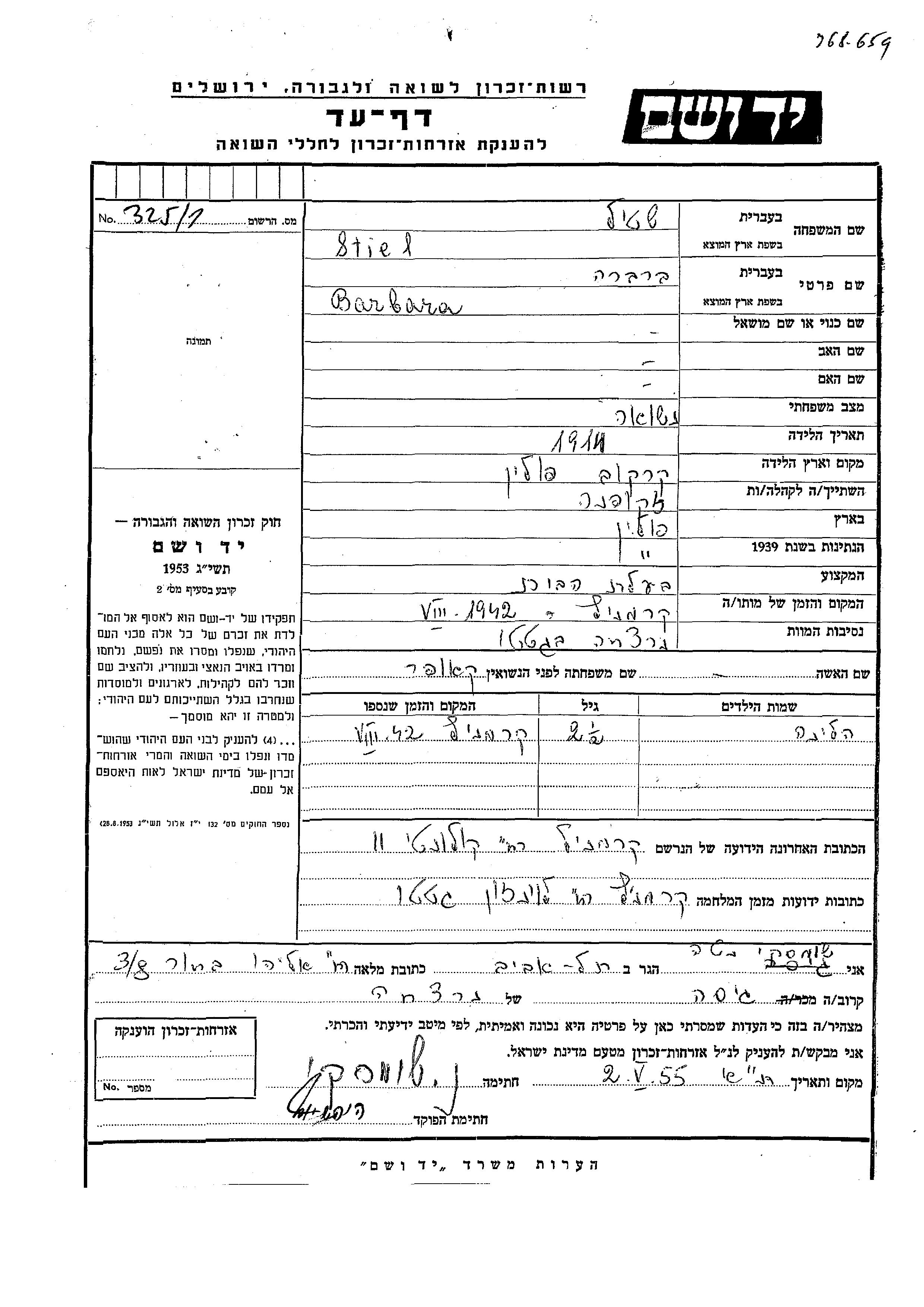 Yad Vashem - Pages of Testimony Names Memorial Collection