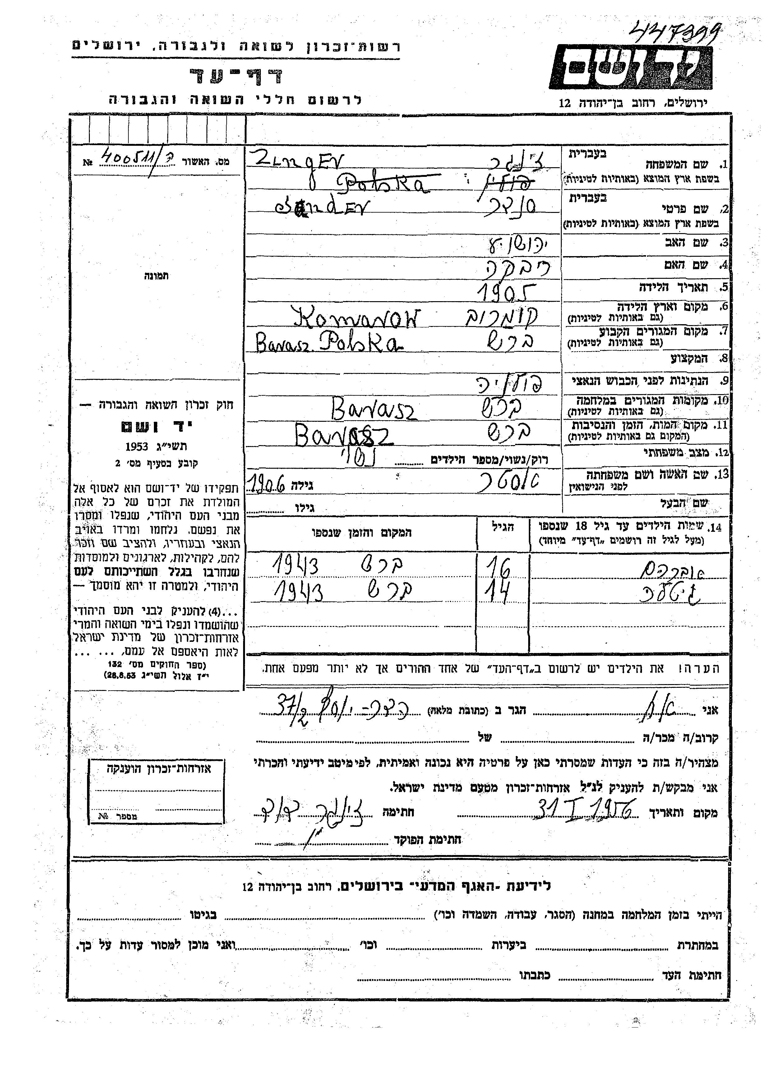 Yad Vashem - Pages of Testimony Names Memorial Collection