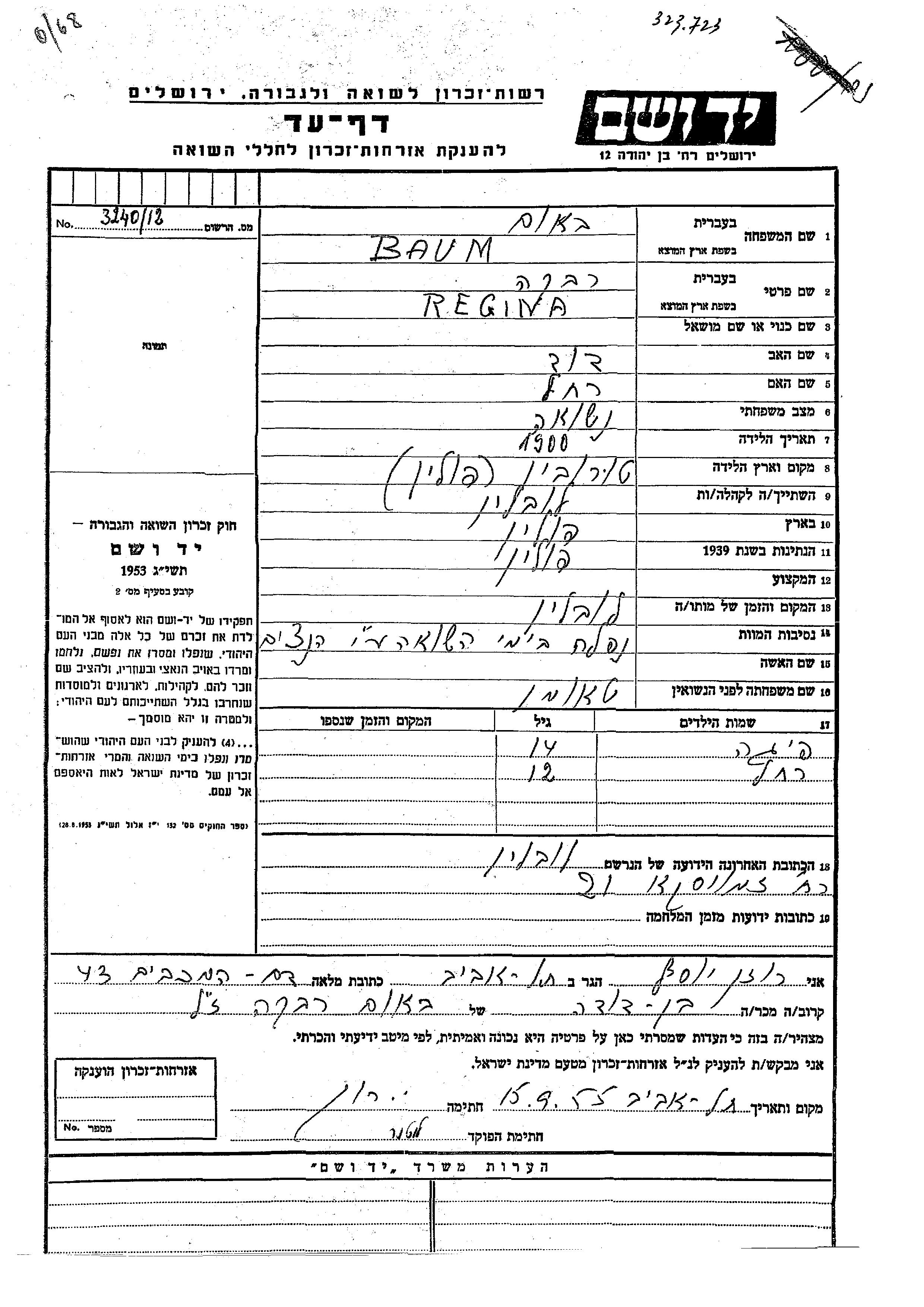 Yad Vashem - Pages of Testimony Names Memorial Collection