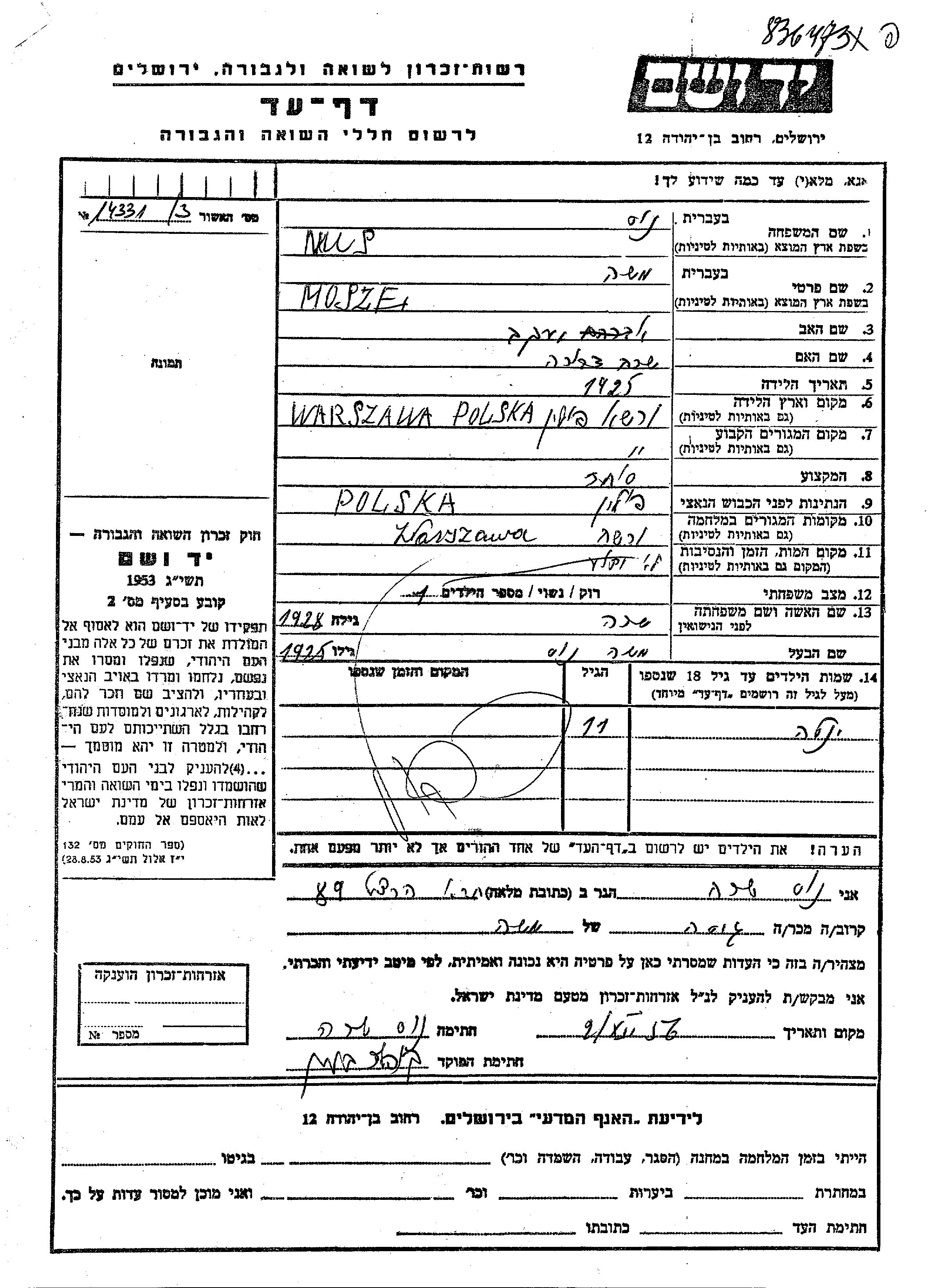 Yad Vashem - Pages of Testimony Names Memorial Collection