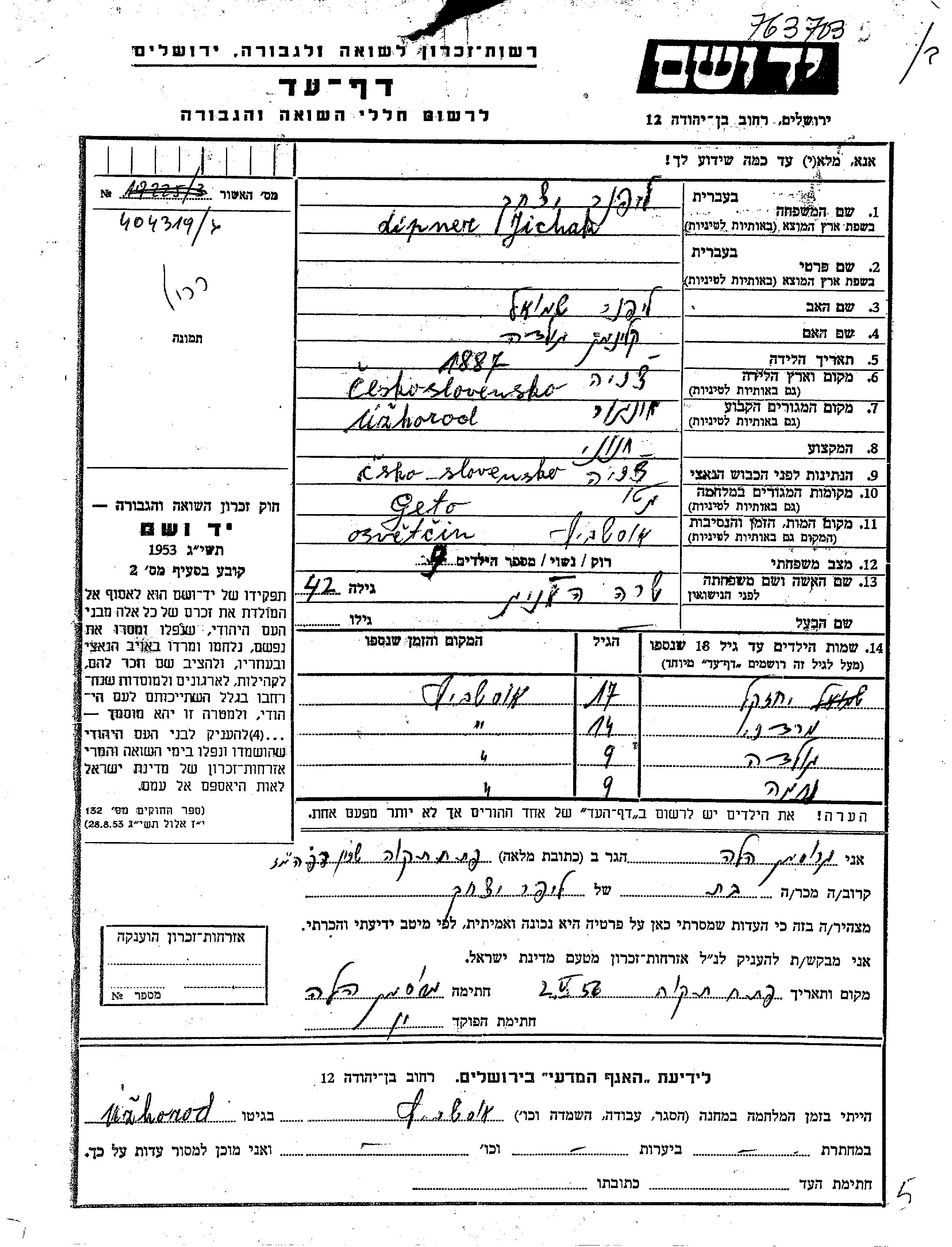 Yad Vashem - Pages of Testimony Names Memorial Collection
