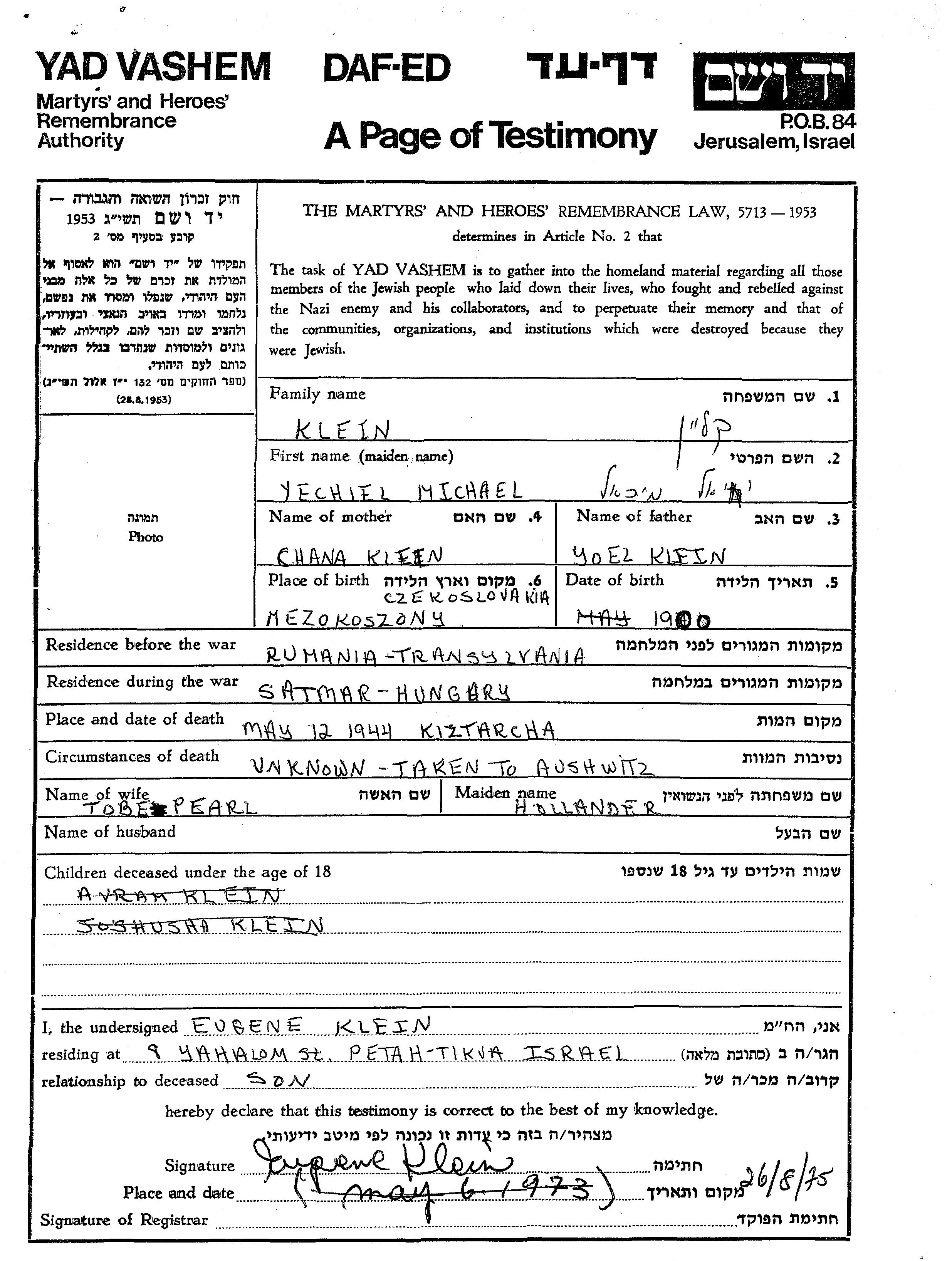 Yad Vashem - Pages of Testimony Names Memorial Collection