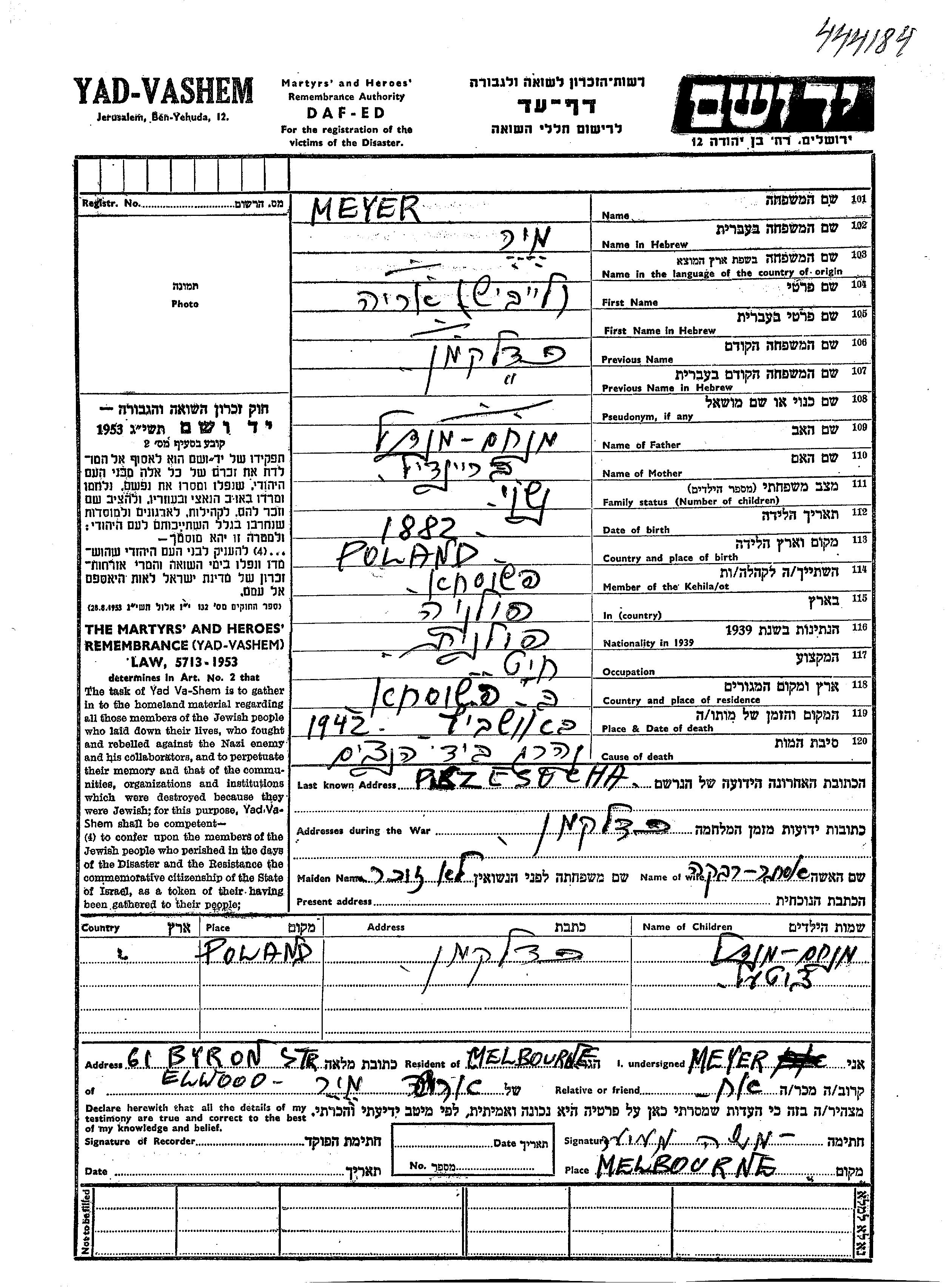 Yad Vashem - Pages of Testimony Names Memorial Collection