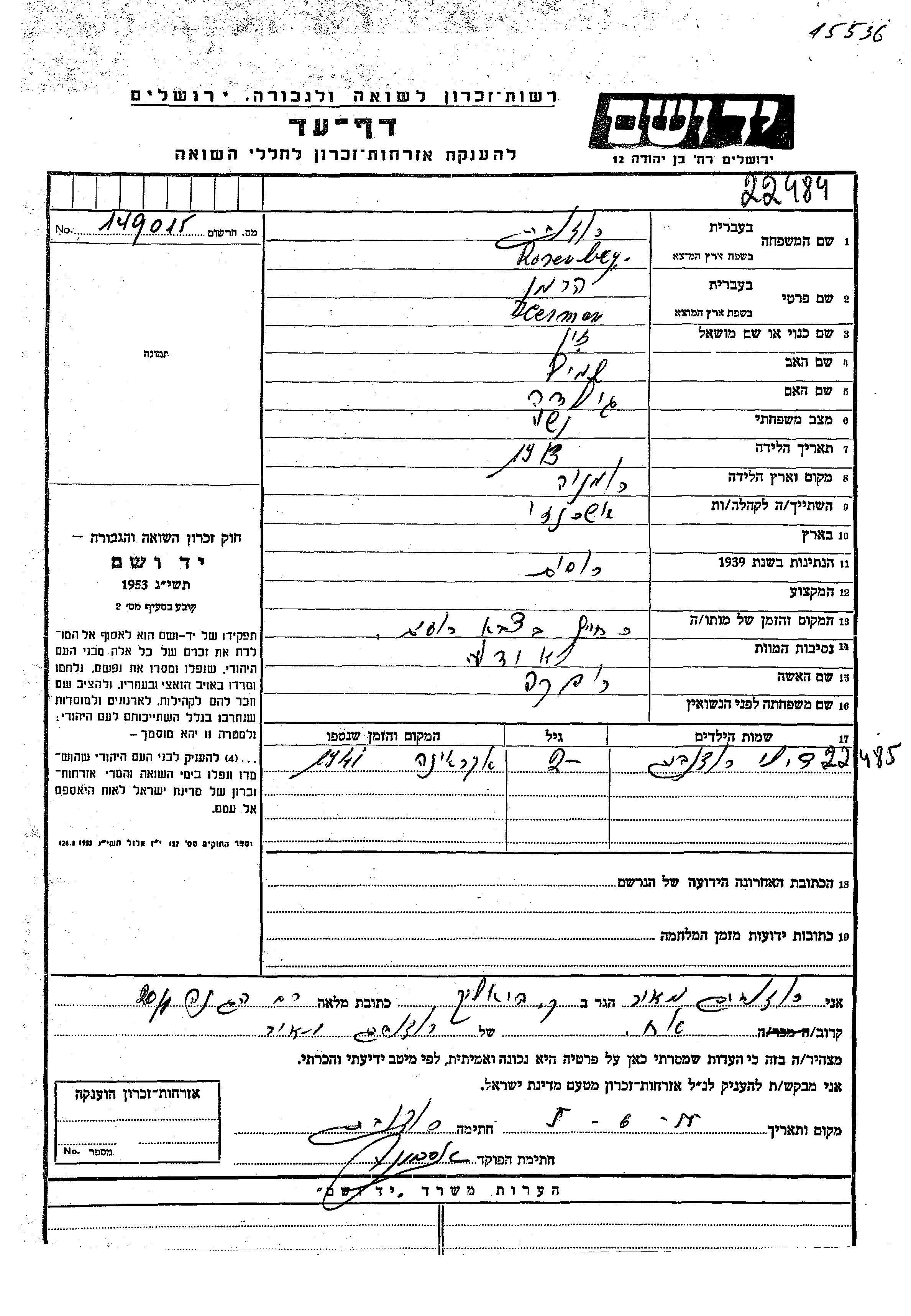 Yad Vashem - Pages of Testimony Names Memorial Collection