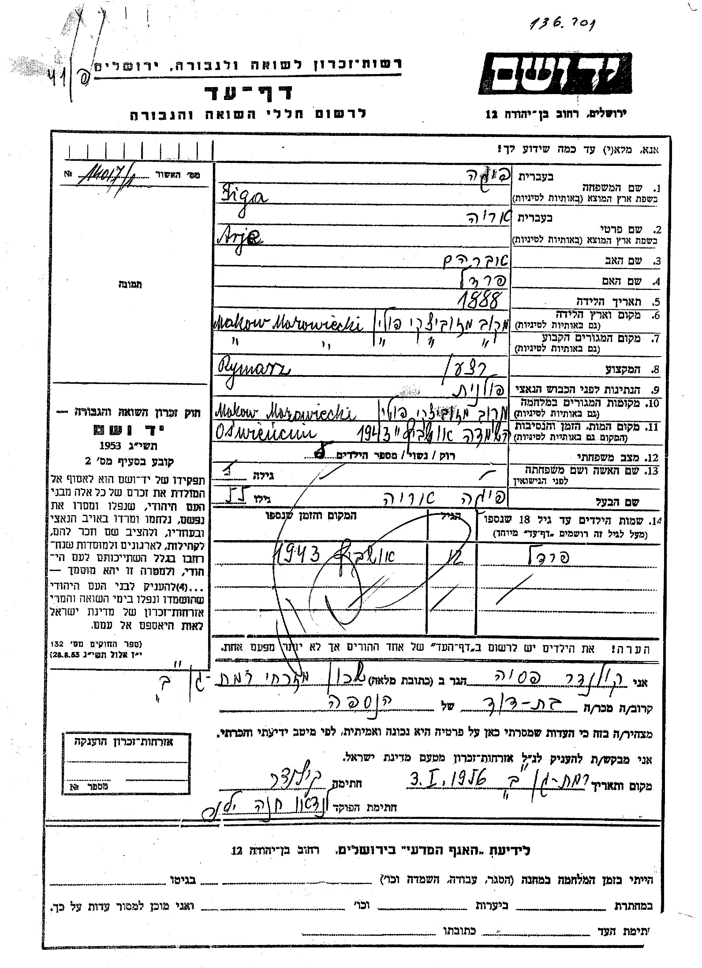 Yad Vashem - Pages of Testimony Names Memorial Collection