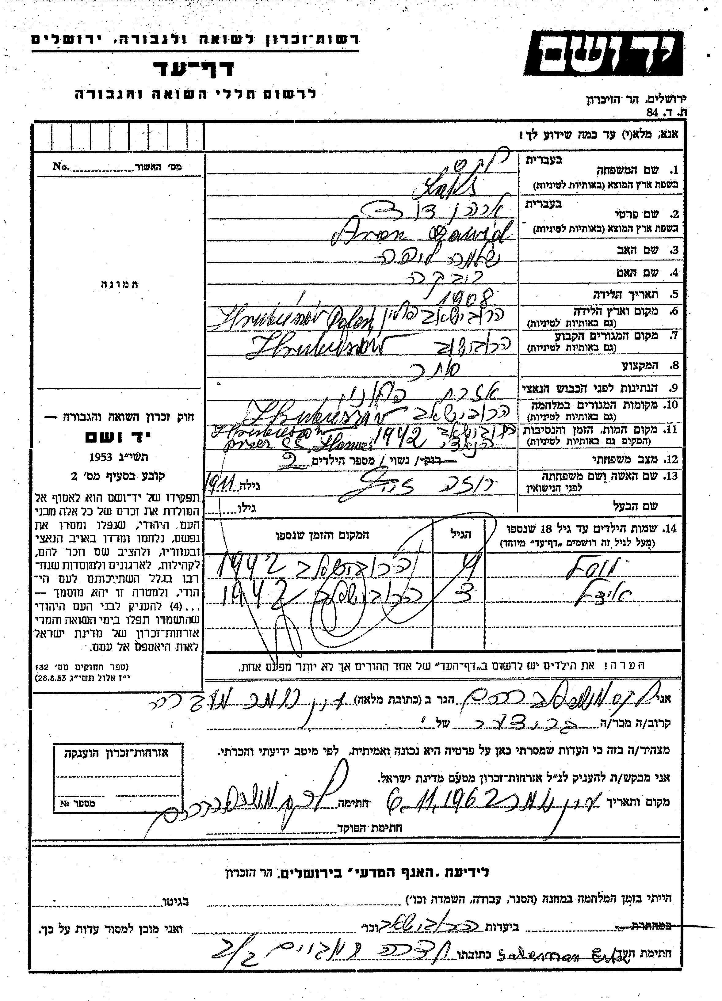 Yad Vashem - Pages of Testimony Names Memorial Collection