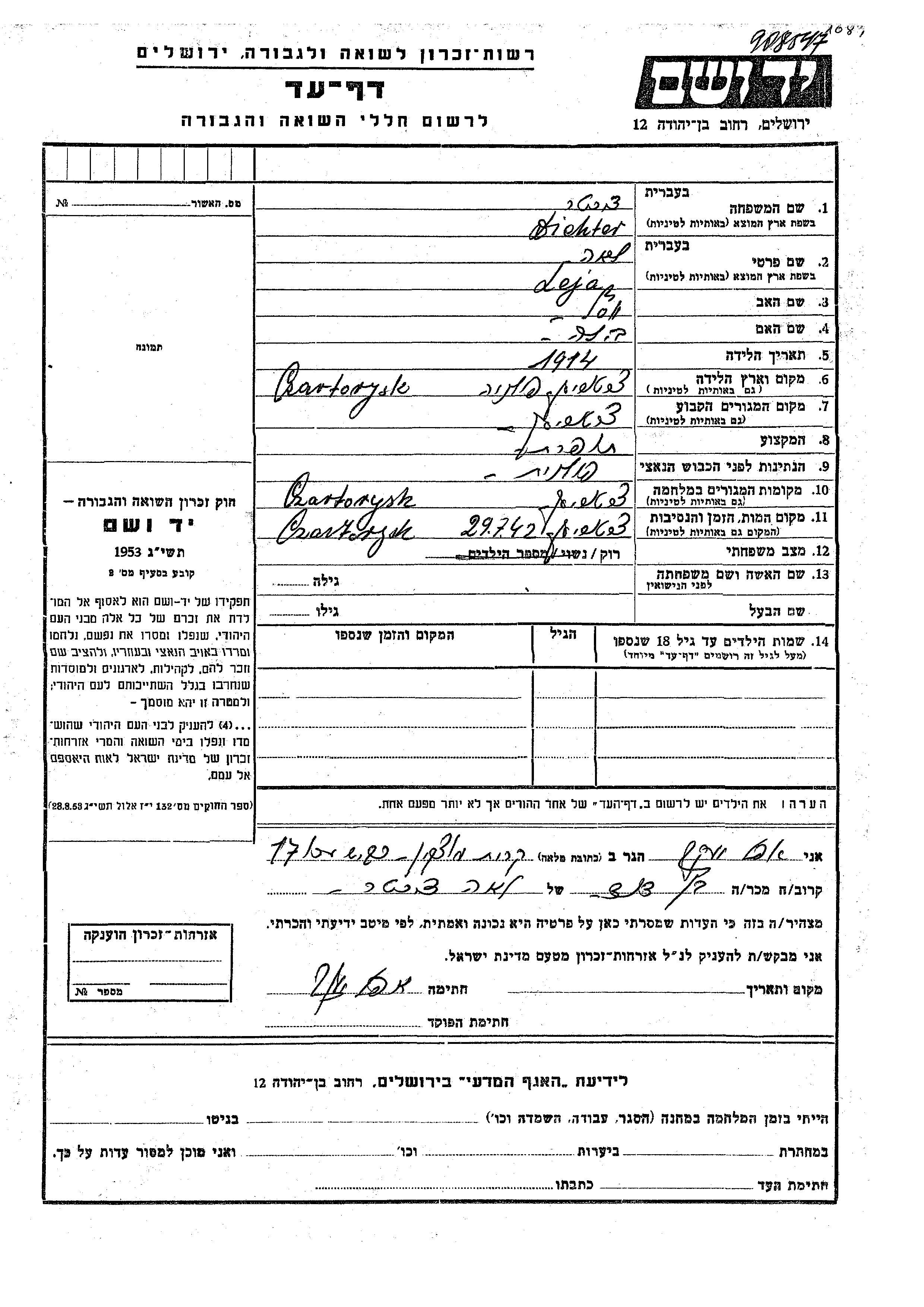 Yad Vashem - Pages of Testimony Names Memorial Collection