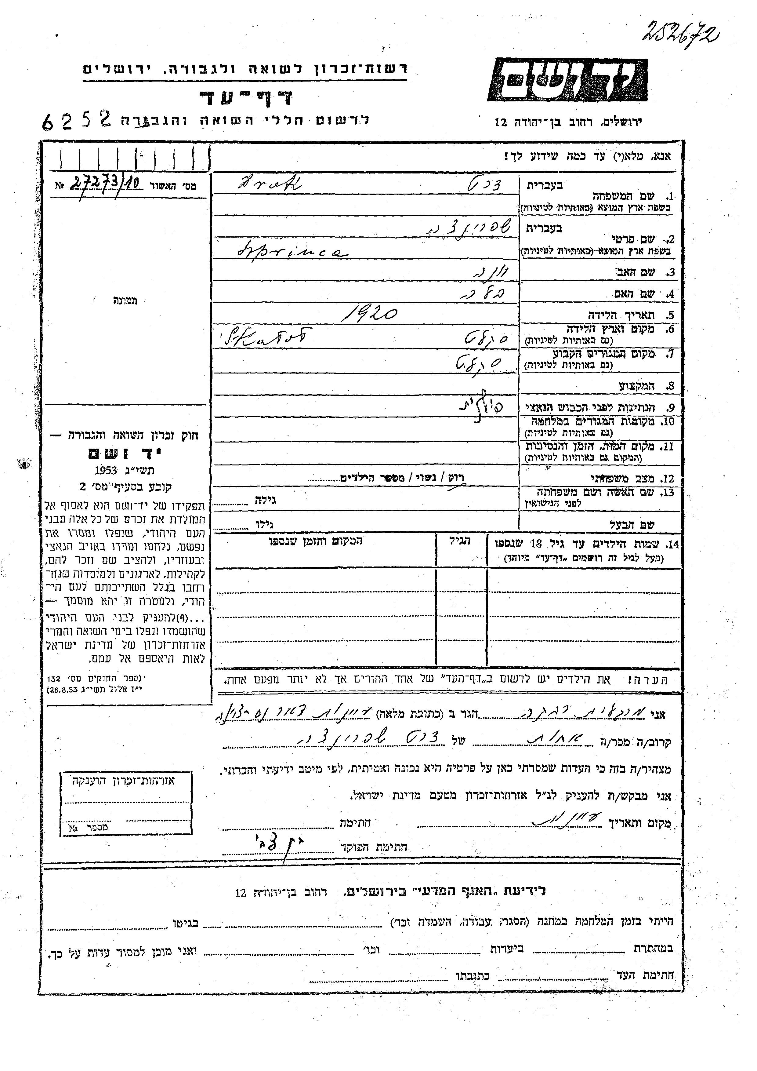 Yad Vashem - Pages of Testimony Names Memorial Collection