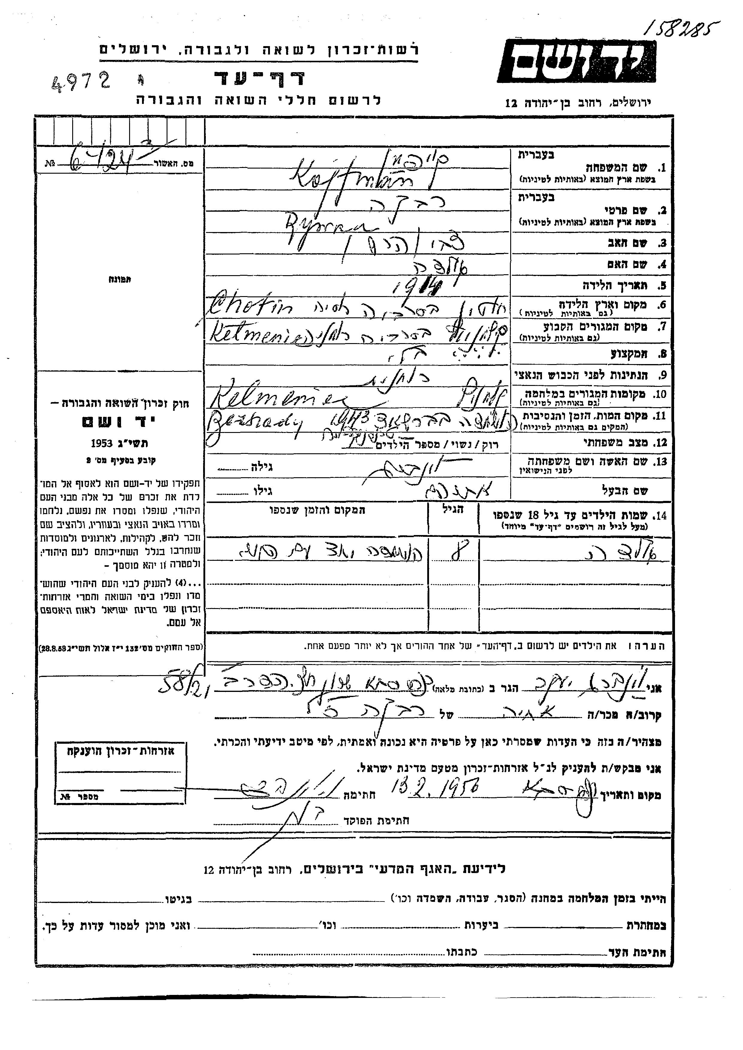 Recherche par lieu de résidence permanente avant la Shoah, ville, village, département, région ou pays.