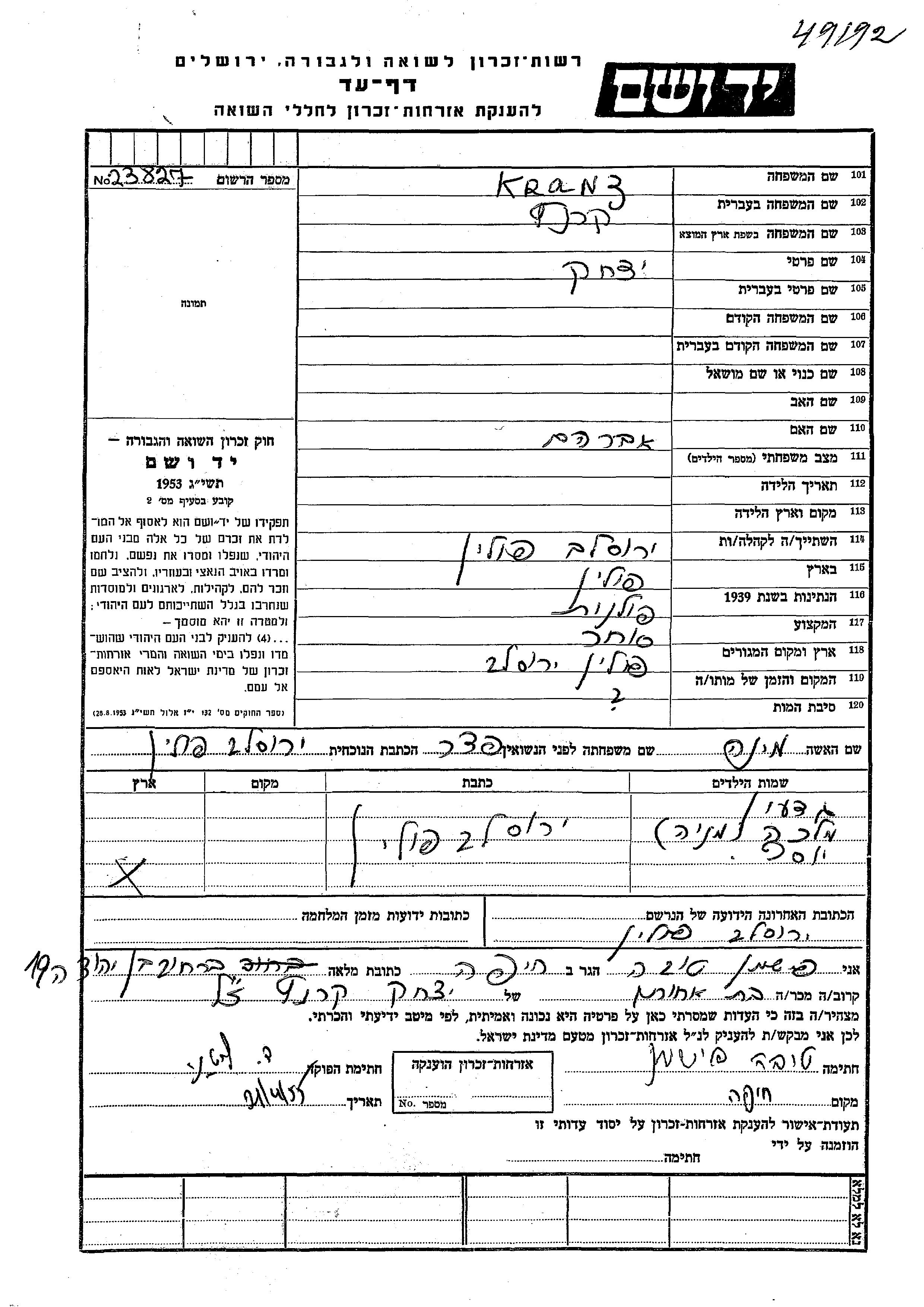 Kranz Gideon Jaroslaw, Pologne Feuille de témoignage