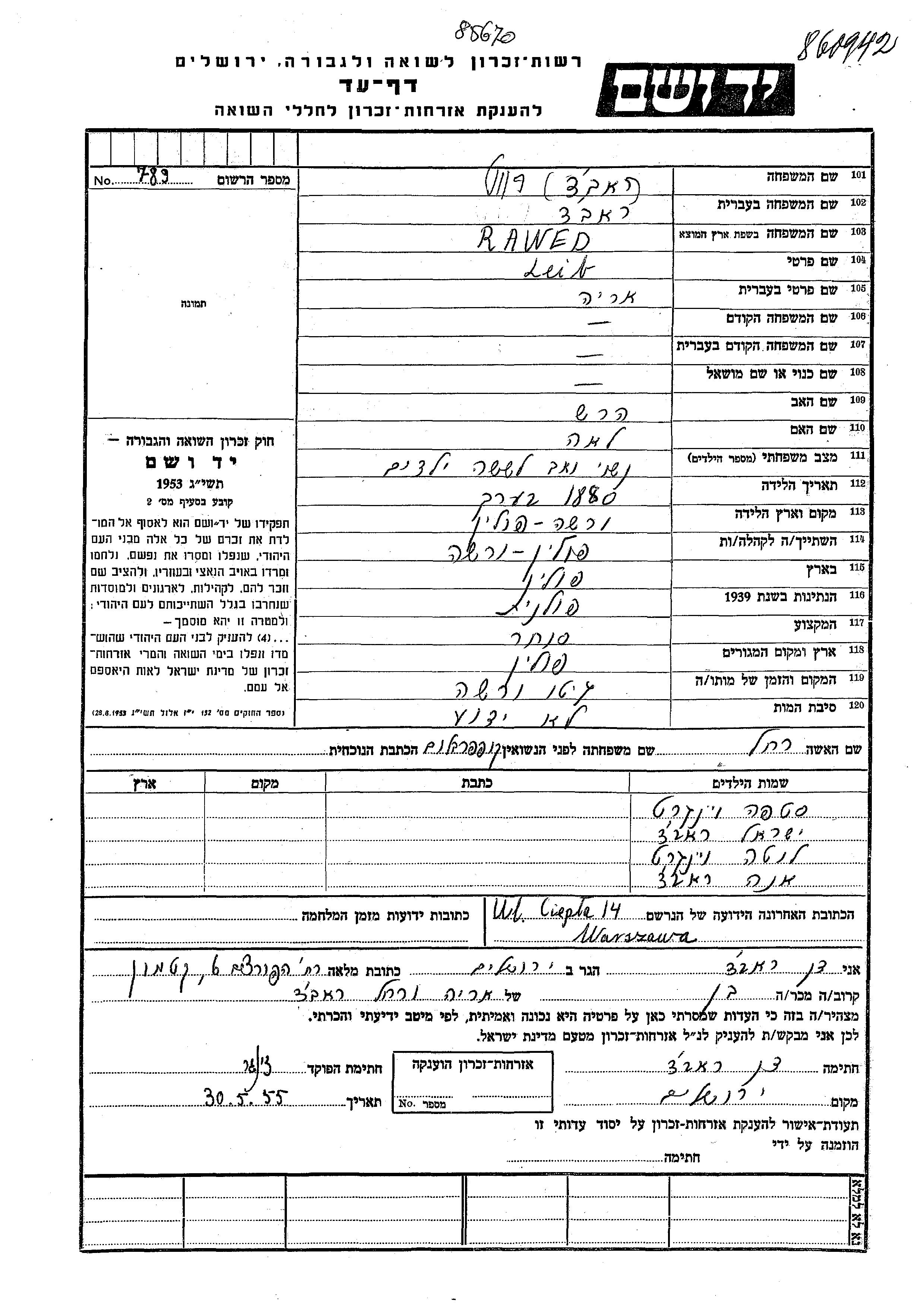 Ana Rawed est né/e fils/fille de Leib Arie et de Rakhel née Kuperblum. Il/elle était Enfant.