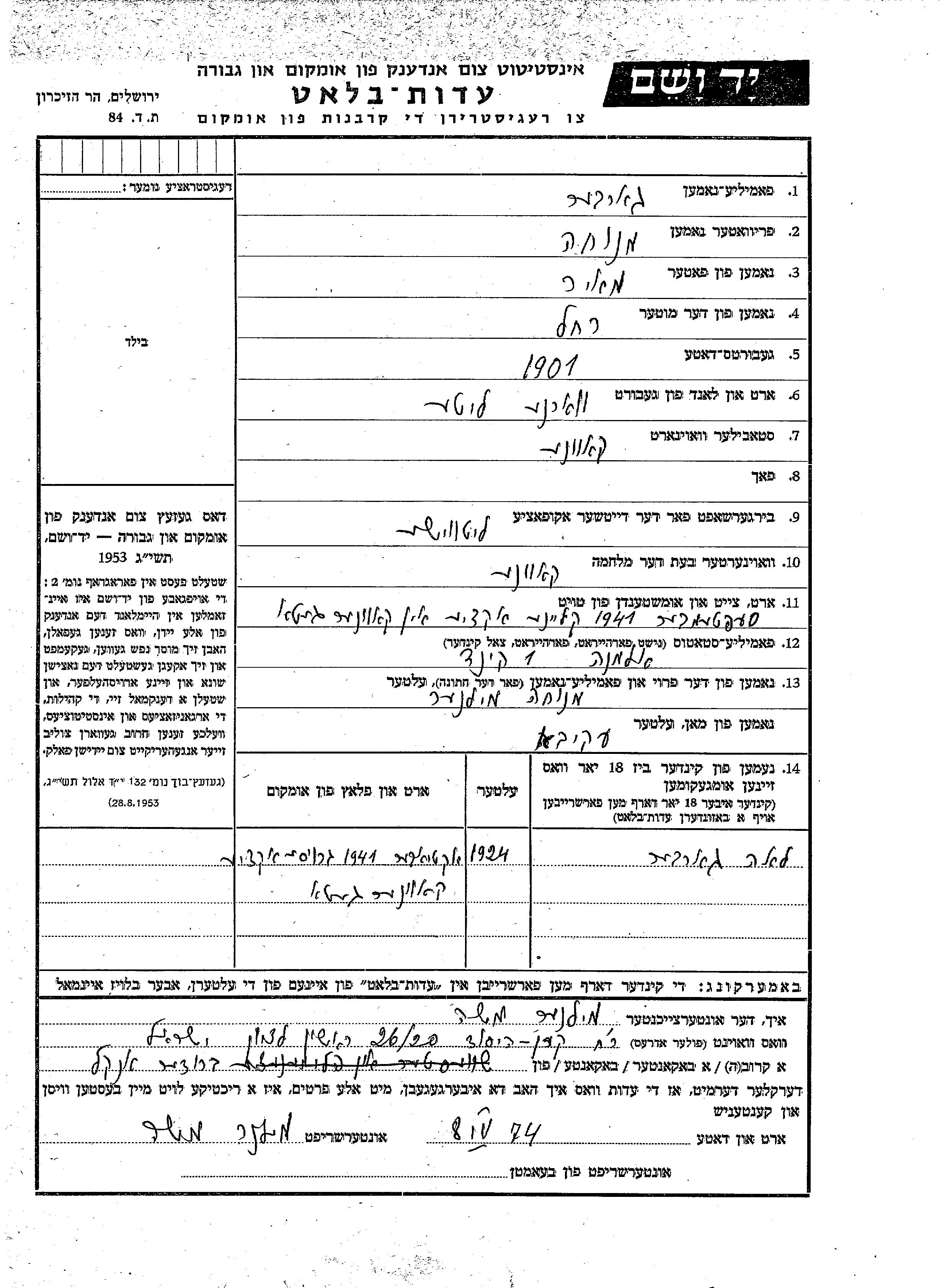 Yad Vashem - Pages of Testimony Names Memorial Collection