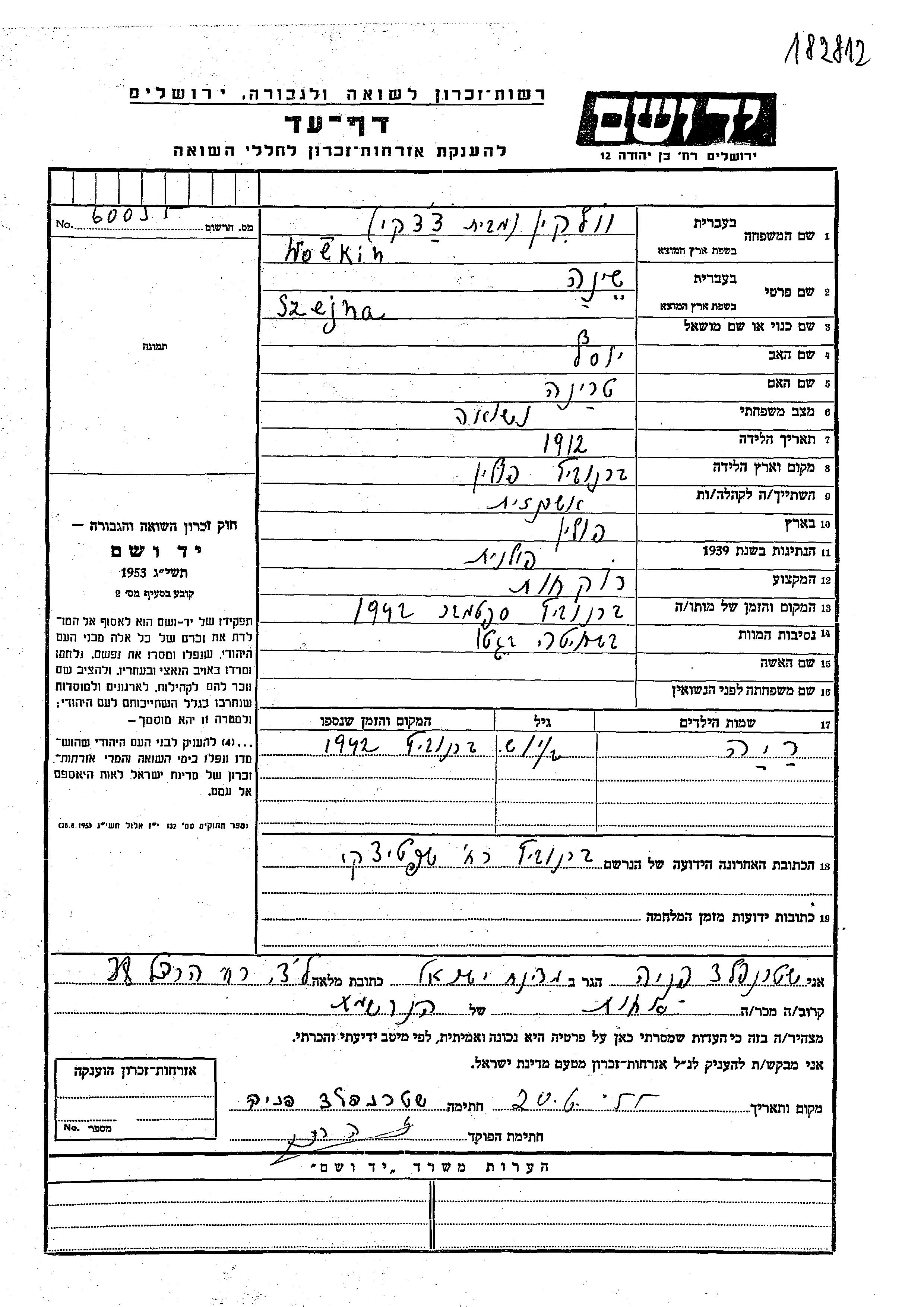 Yad Vashem - Pages of Testimony Names Memorial Collection