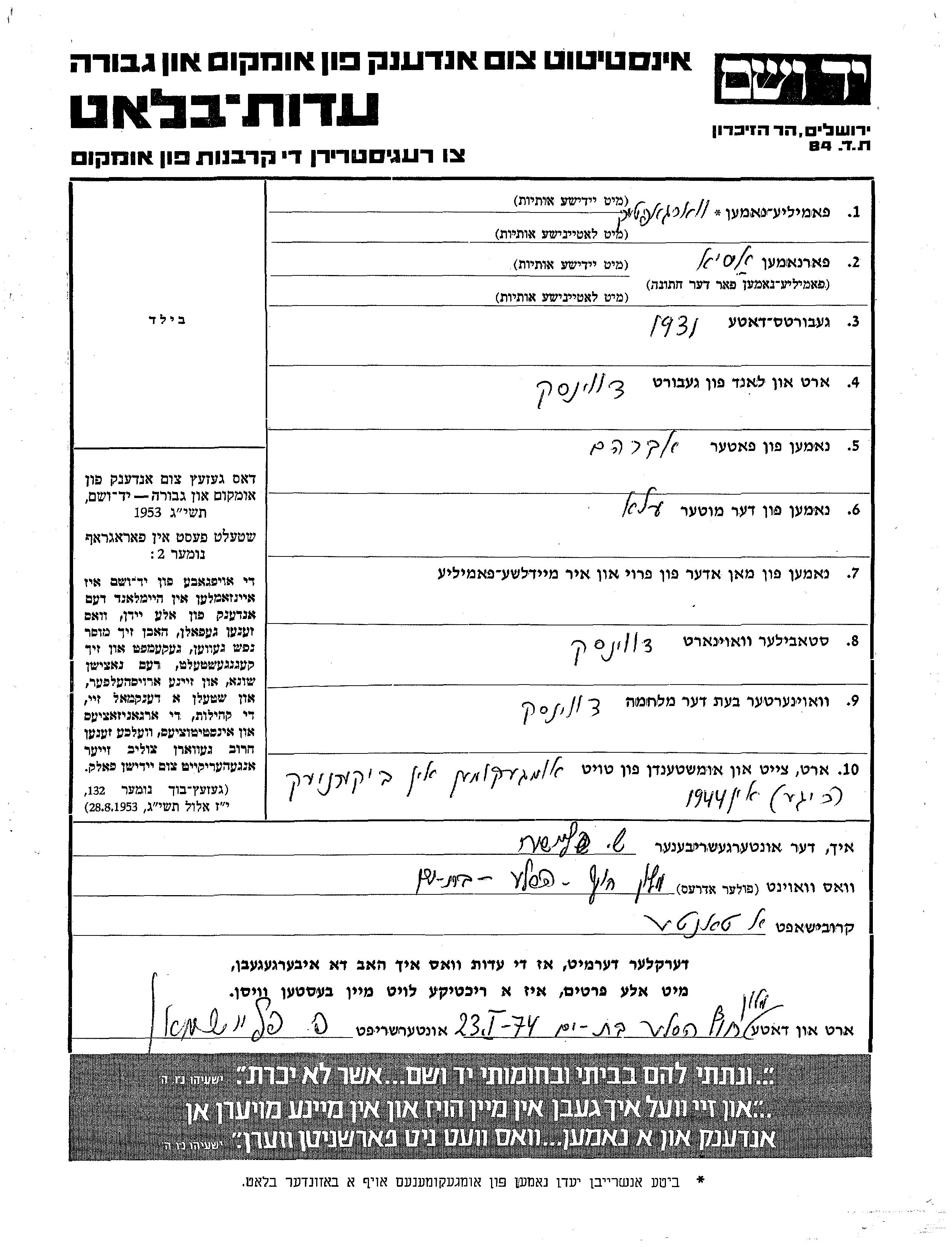 Yad Vashem - Pages of Testimony Names Memorial Collection