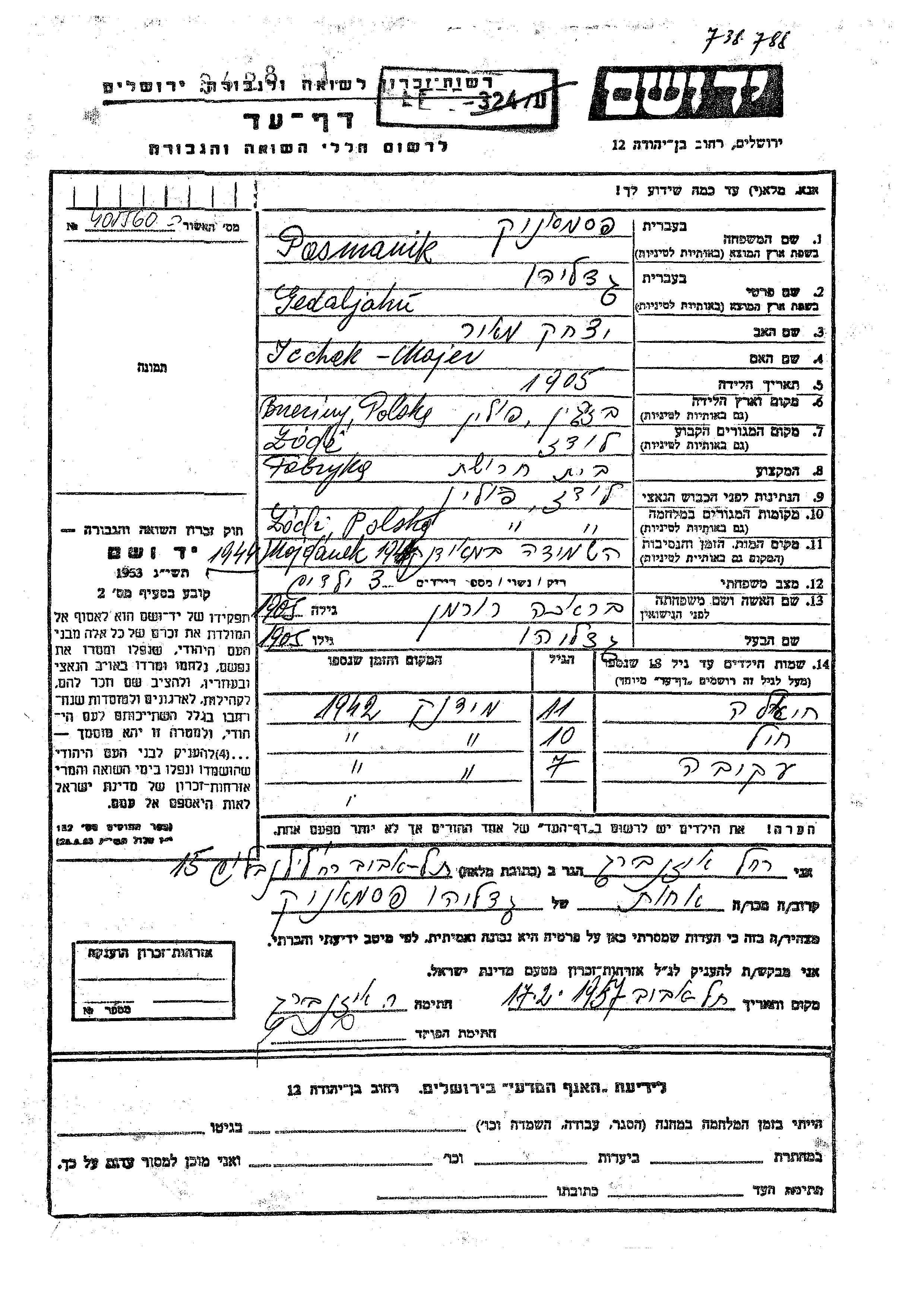 Yad Vashem - Pages of Testimony Names Memorial Collection