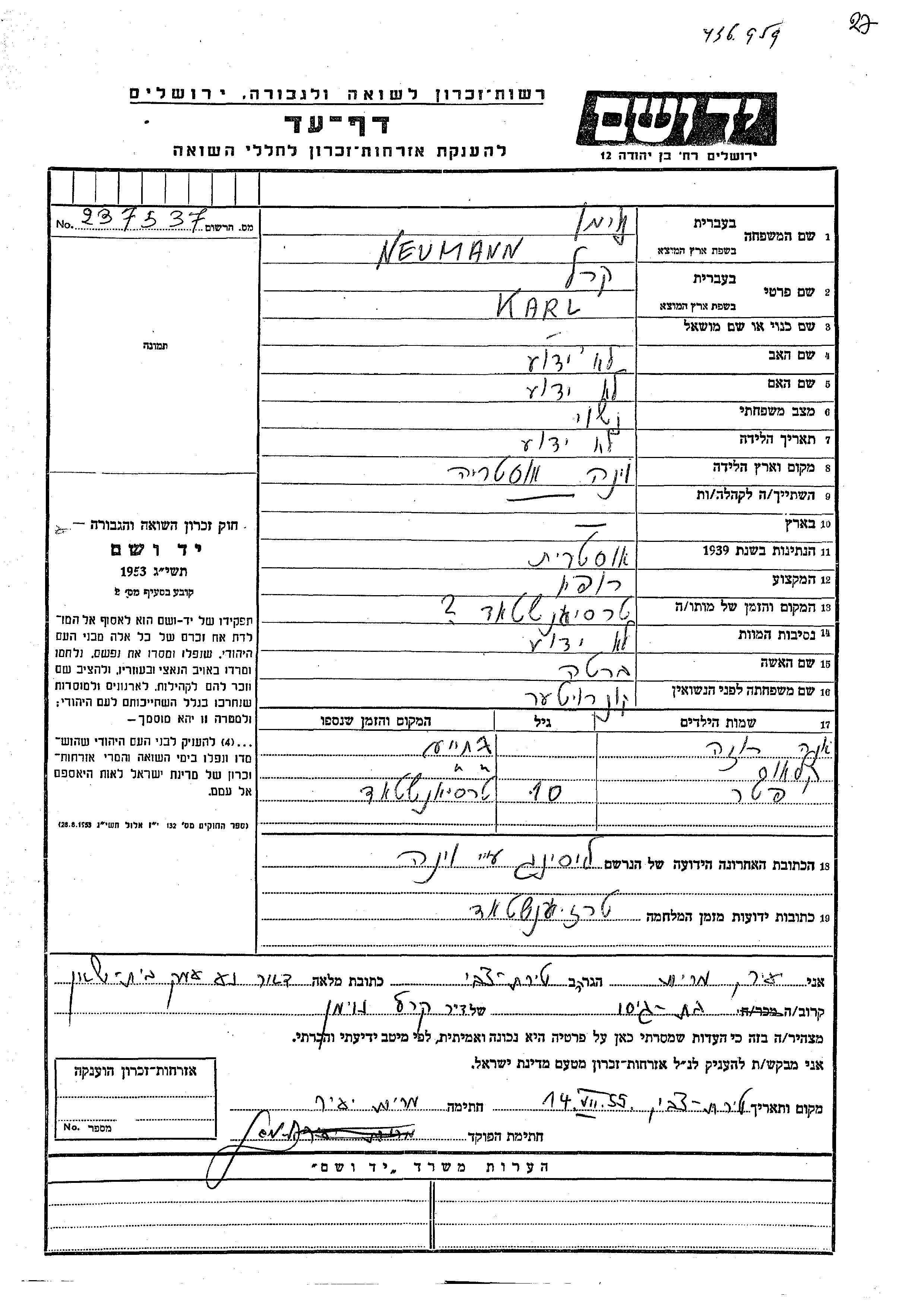 Yad Vashem - Pages of Testimony Names Memorial Collection